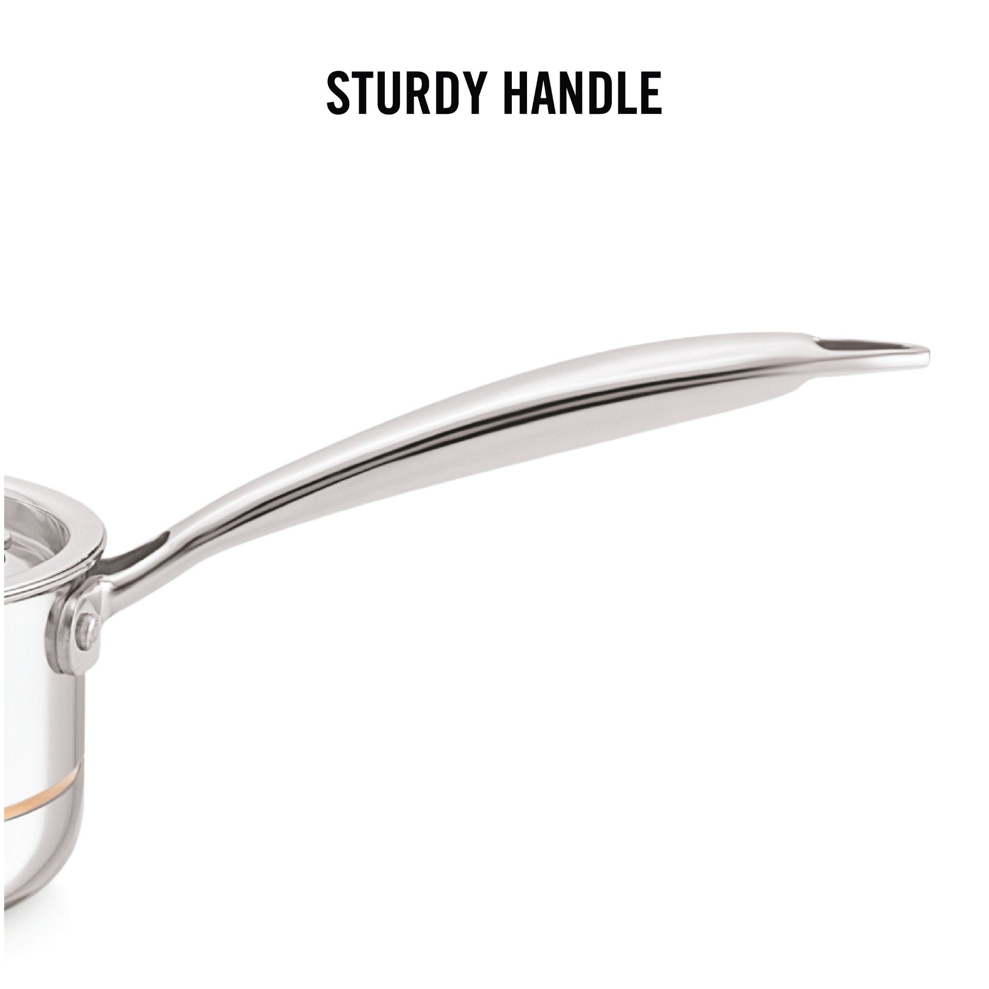 - Sturdy Handles: The saucepan is equipped with sturdy handles that provide a secure and comfortable grip. These handles are designed to stay cool during stovetop use, allowing for safe and convenient handling of the saucepan, even when it's hot.