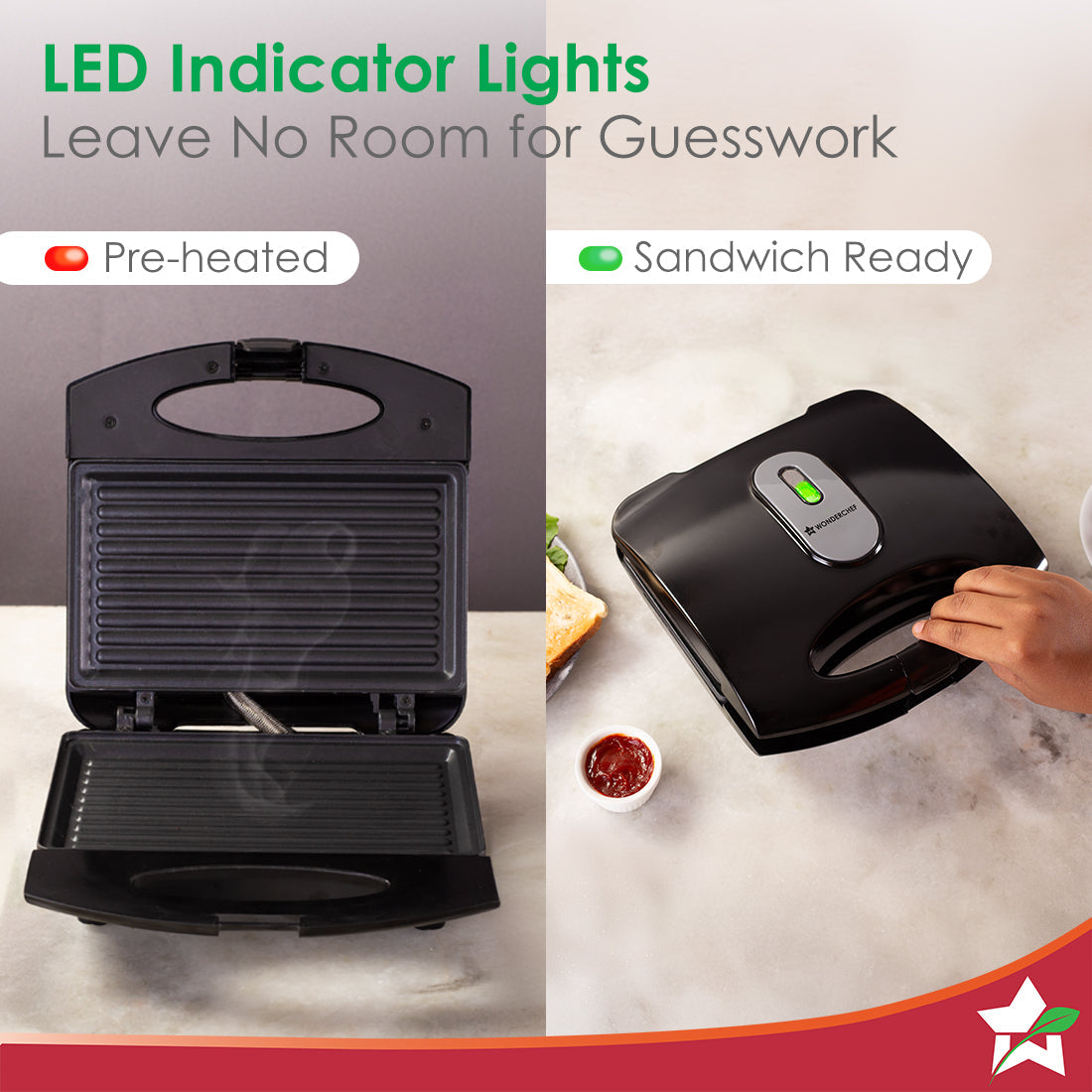 - Indicator Lights: LED indicator lights show when the griller is preheated and ready to use. This helps you know when to place sandwiches for cooking.