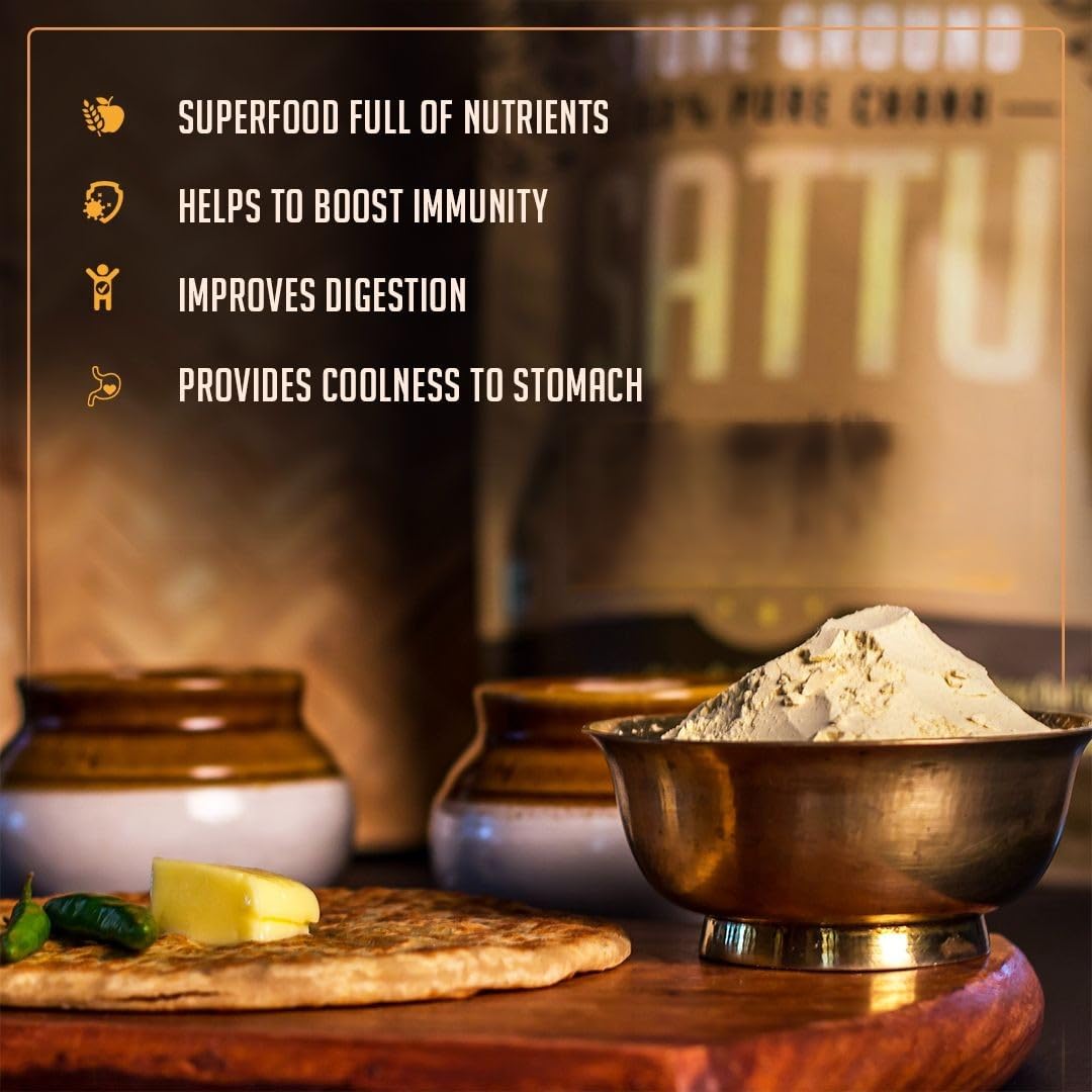 Adya Organics Sattu | 100% Pure & High-Protein Roasted Chana Powder | Chemical-Free & Natural | Perfect for Summer Drinks, Parathas, & Snacks | Healthy & Tasty | 2kg- (Pack of 2)