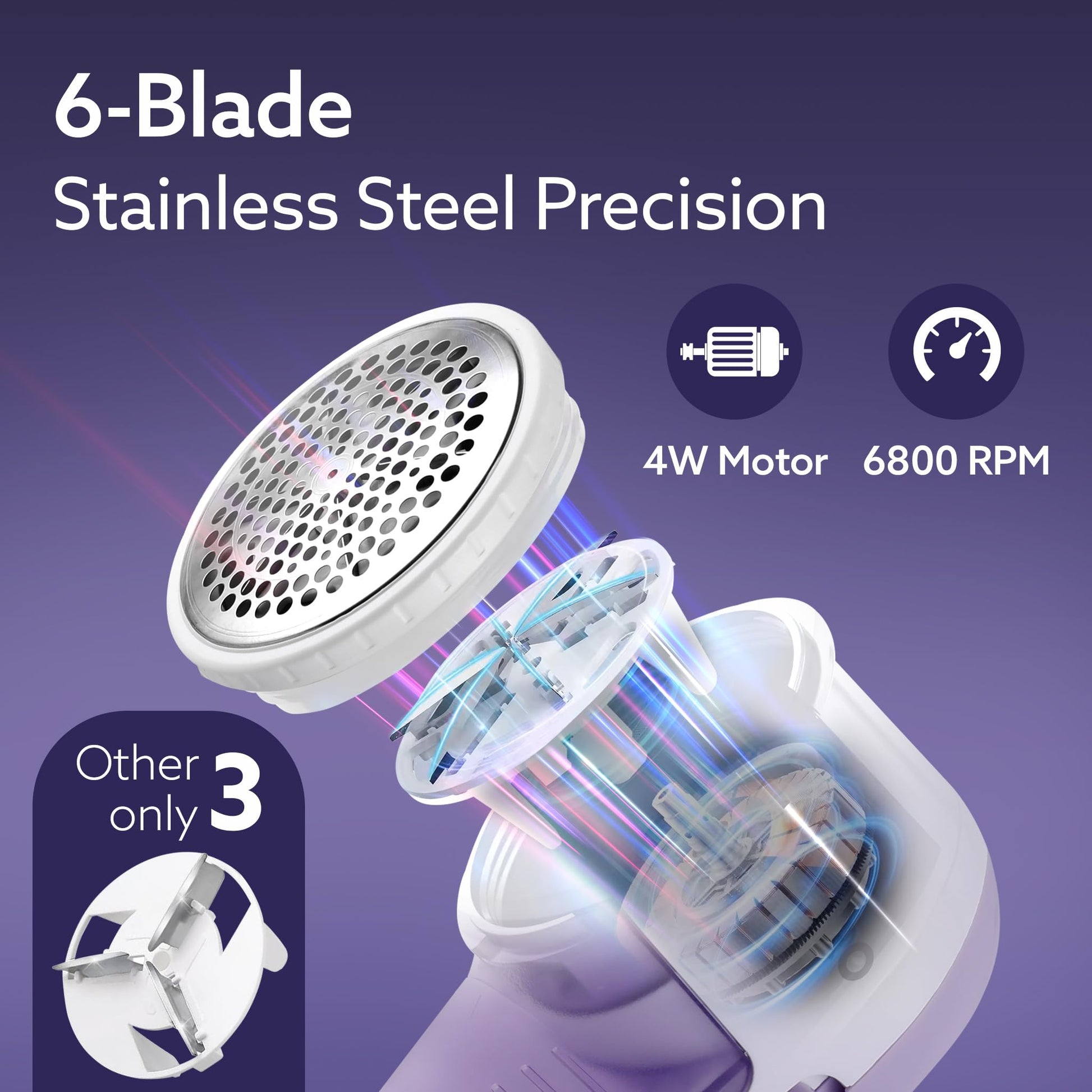 - 6 Leaf stainless steel blades smoothly cuts away the lint and prevents the fabric from getting damaged
