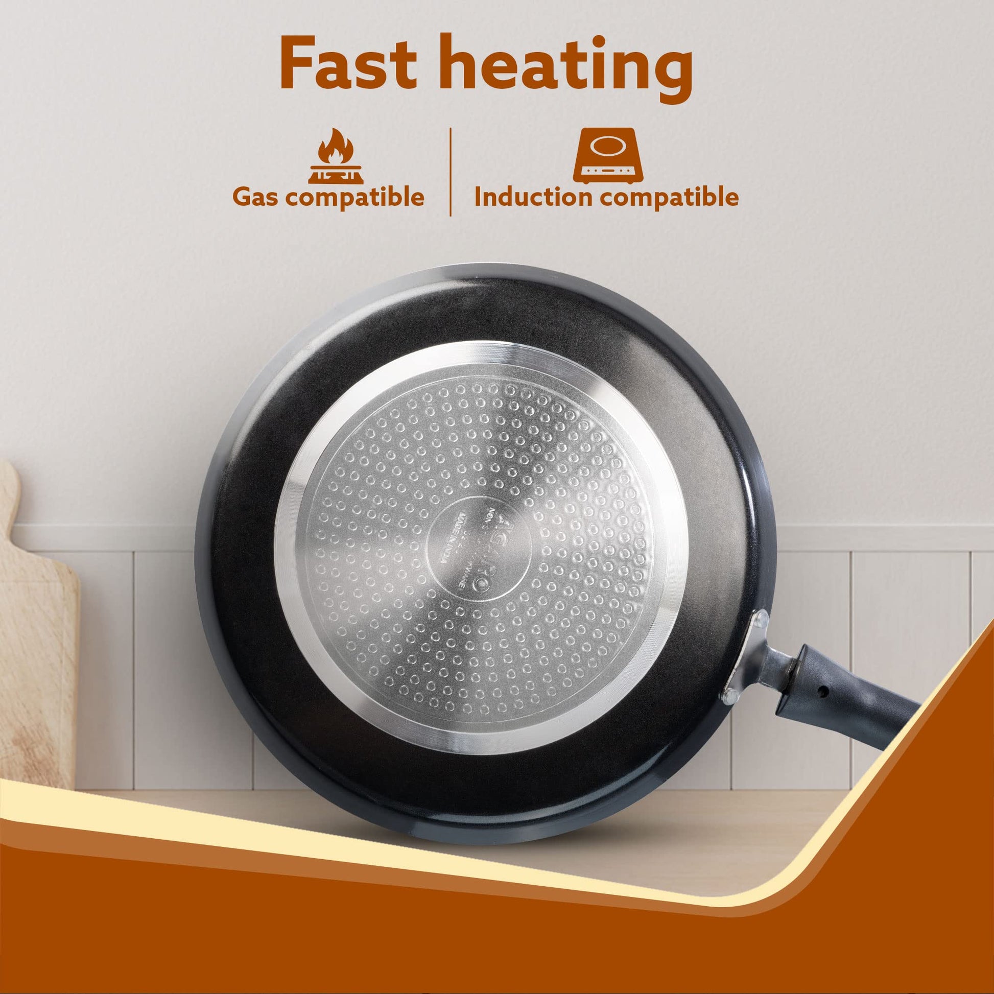 - Comes in 28 cm diameter size with flat base and is compatible on Induction oven, gas stove, hotplates for maximum cooking flexibility in your kitchen