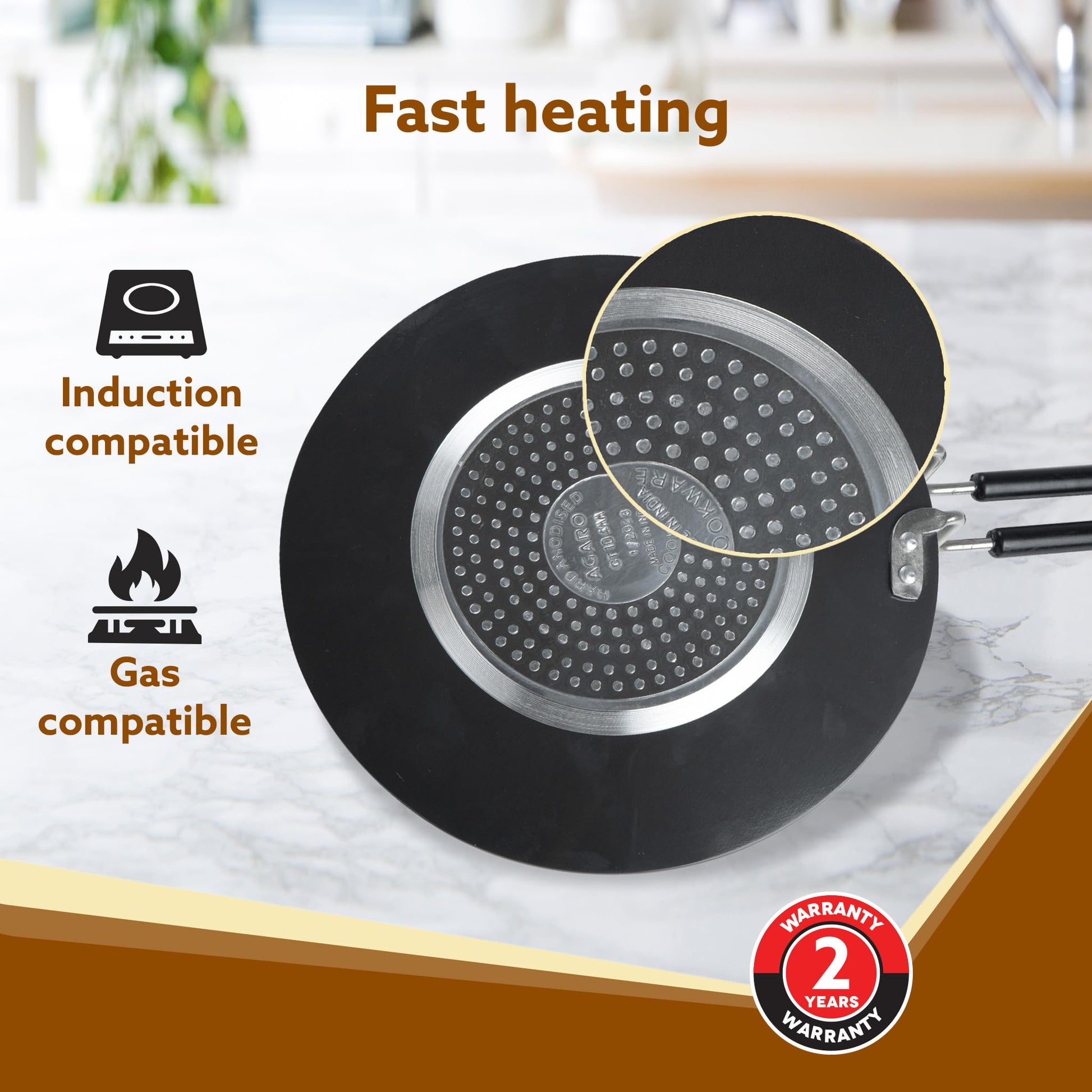 - Made from 4 mm thick aluminum material for healthier cooking and better heat conduction for faster cooking.