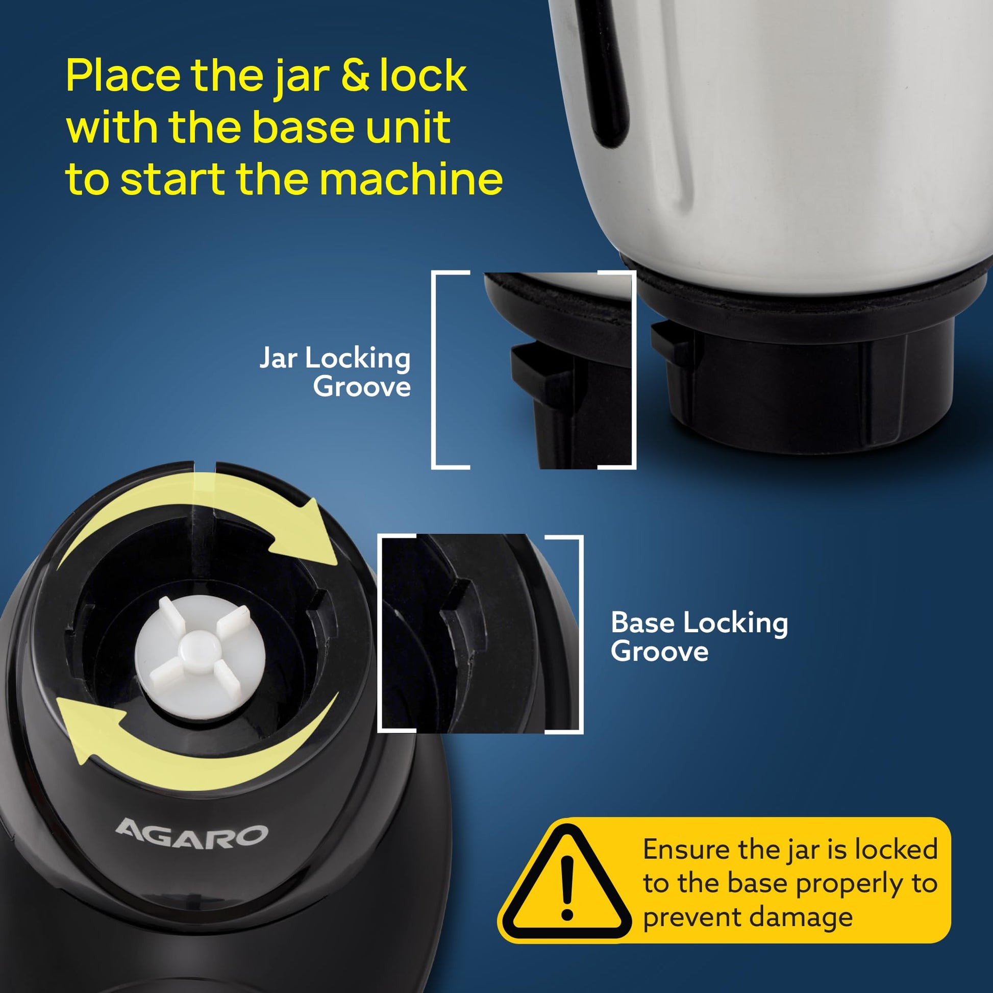 AGARO Elite Mixer Grinder 550W, 100% Copper Motor, 3 Stainless Steel Jar, 3 Speed, Whip Function, Stainless Steel Blades, Wet & Dry Grinding, Black