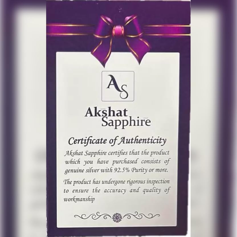 - The product belongs to Akshat Sapphire Brand, which is an established brand in silver and semi precious stone jewellery. The silver purity is guaranteed and comes with the Akshat Sapphire Guarantee certificate.