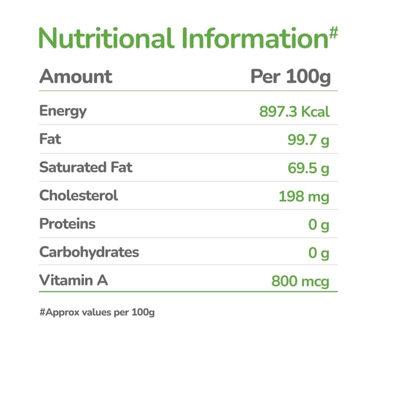 - Traditionally slow-churned: Prepared following the intricacies of the traditional Bilona method, the ghee undergoes a slow, elaborate process, synonymous with the way ghee was made at home for generations.