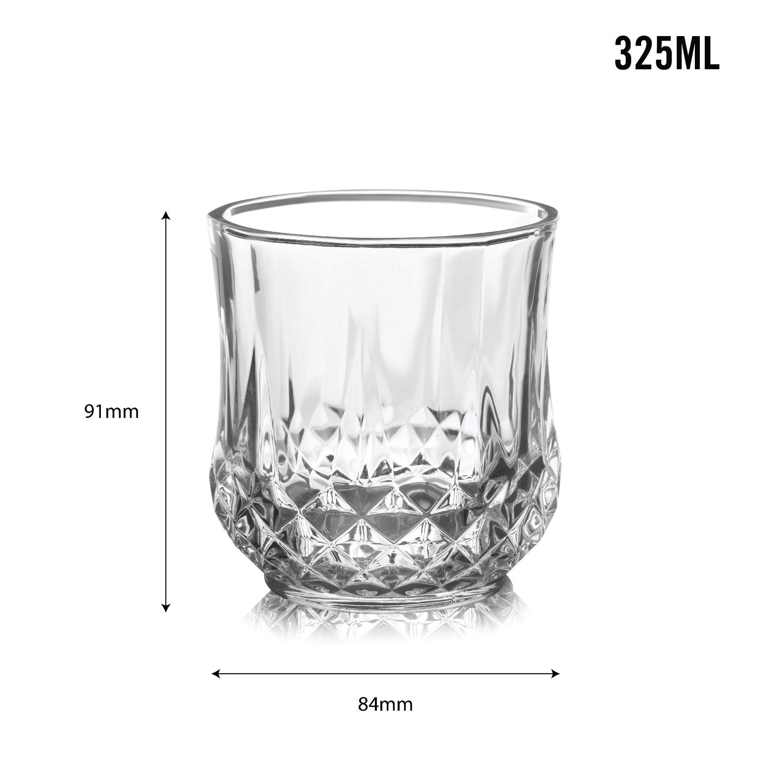 - The Amore Glass Tumblers set comprises six stunning clear glass tumblers, available in three sizes (215ml, 265ml, and 325ml), providing versatility for a wide range of beverages.