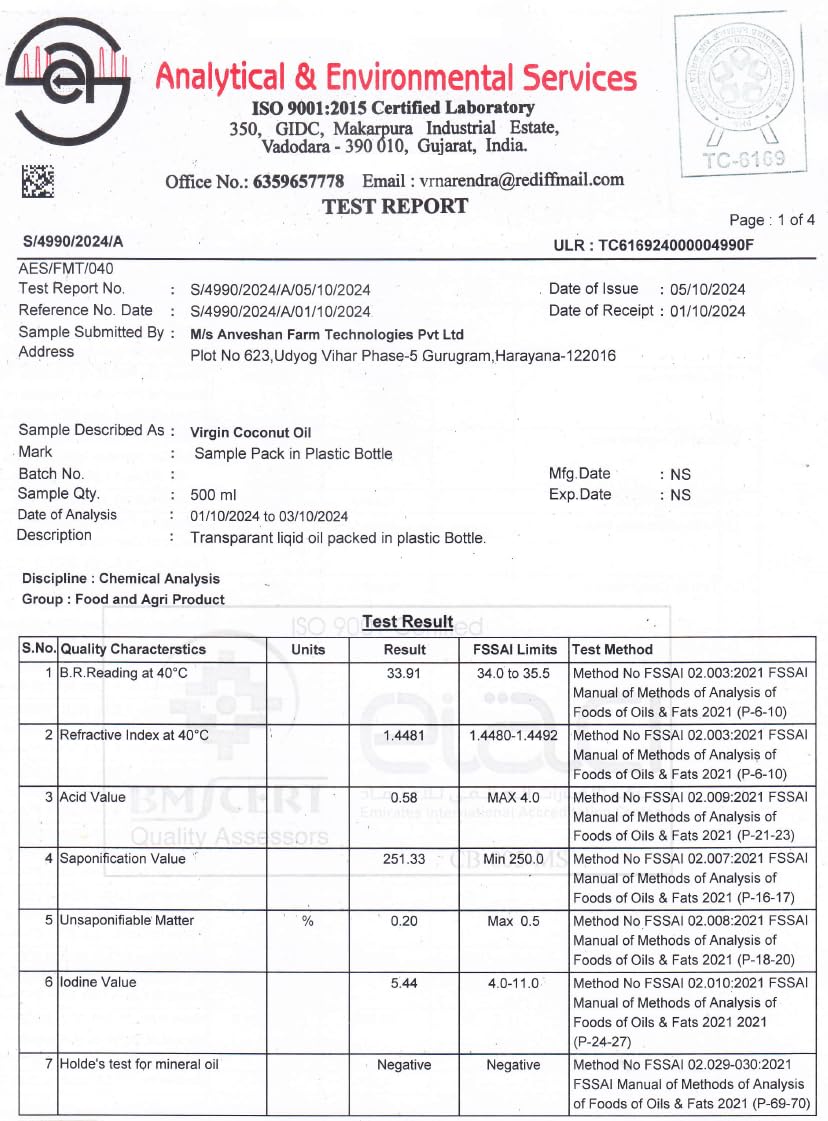 - LAB-TESTED OIL: We comply with 16 FSSAI mandated parameters for testing our coconut oil and make sure that every batch undergoes strict quality checks.