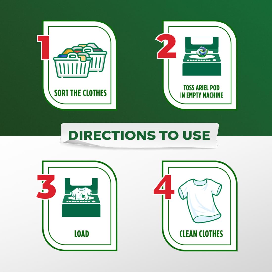 - Ariel 4in1 PODs are specially designed to be used in any fully automatic machine. To use, place the Pod in the empty drum of the machine. Load the clothes and wash away those tough stains.