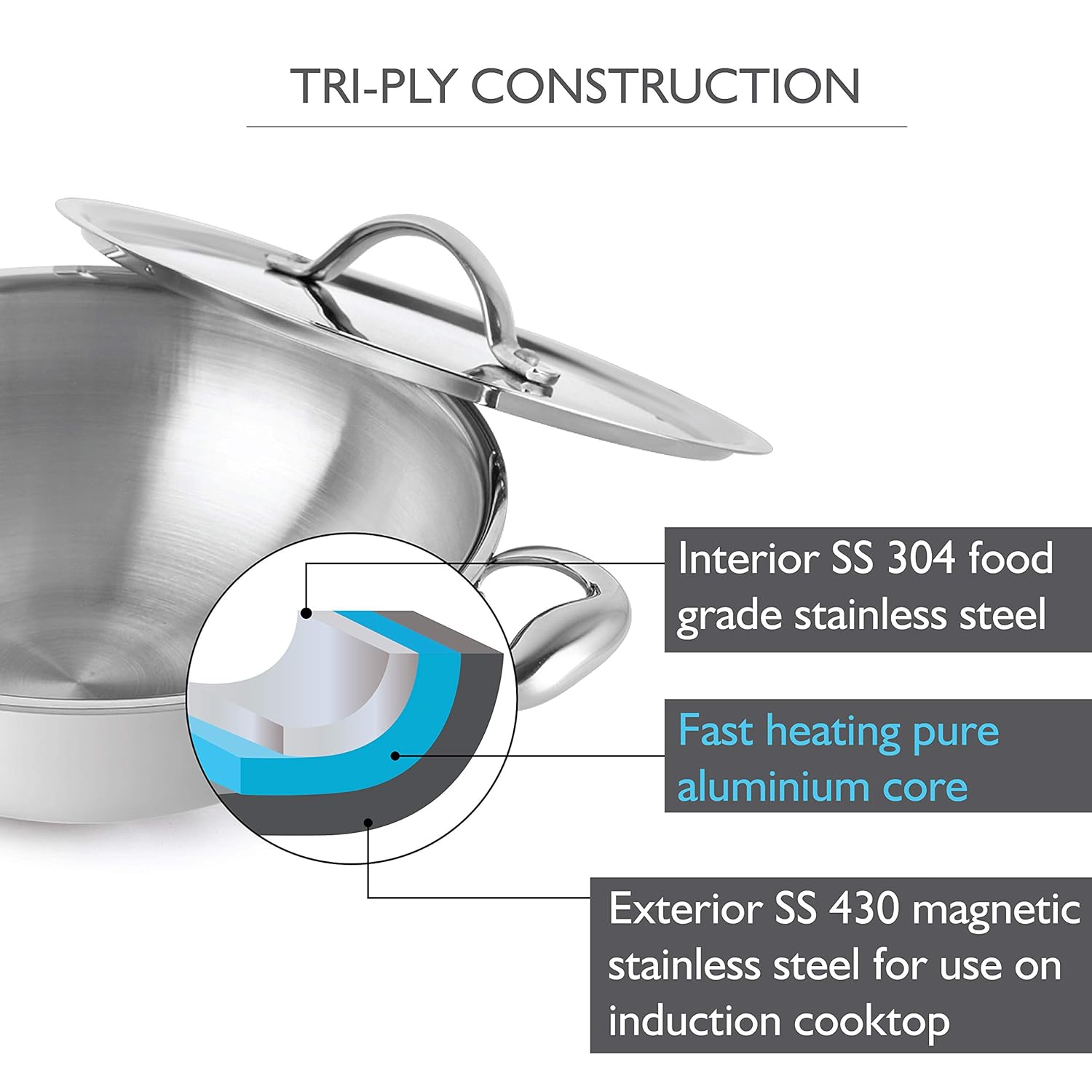 Armour Tri-Ply Induction Base Kadhai with Lid