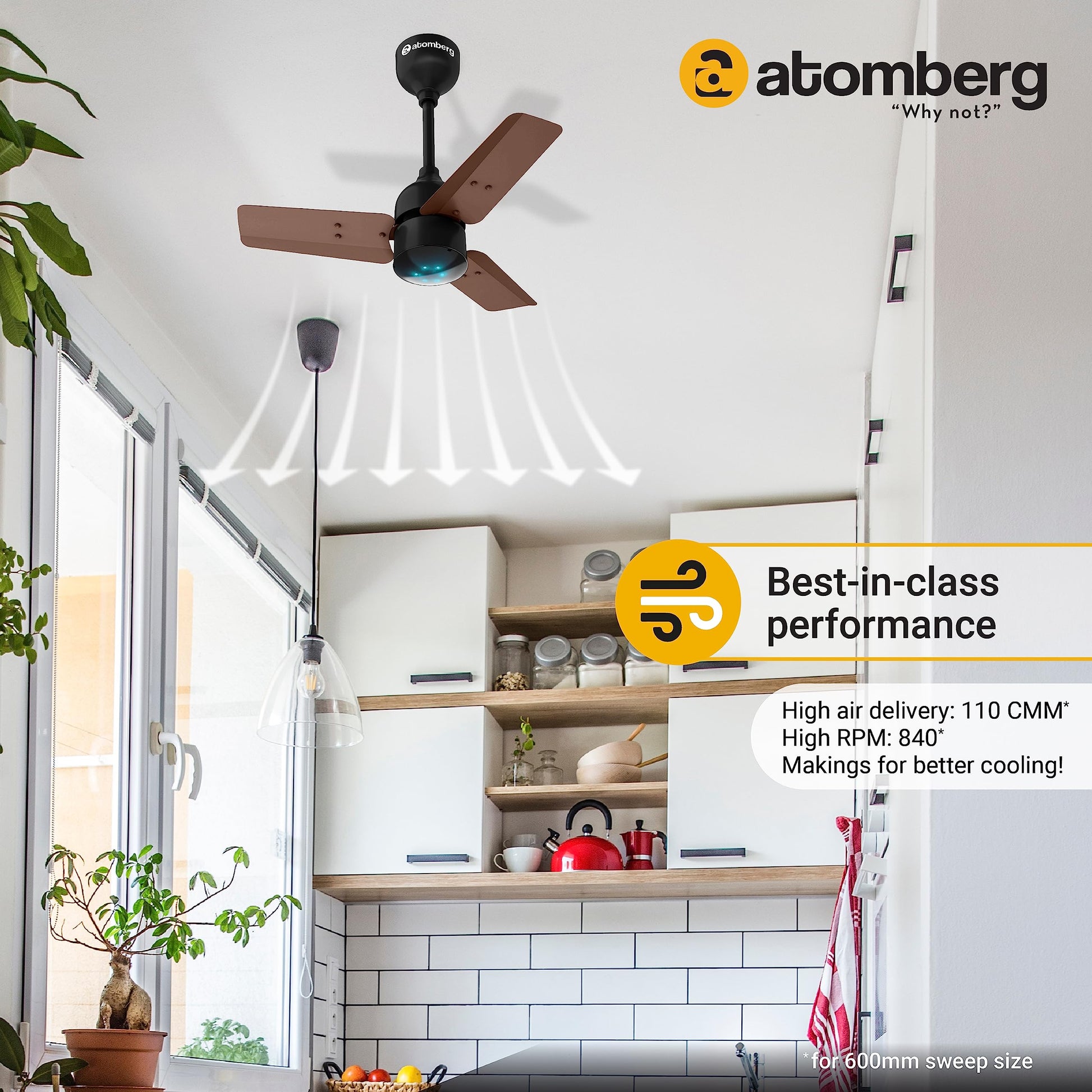 atomberg Renesa 600mm BLDC Ceiling Fan with Remote Control | BEE 5 star Rated Energy Efficient Ceiling Fan | High Air Delivery with LED Indicators | 2+1 Year Warranty (Brown & Black)