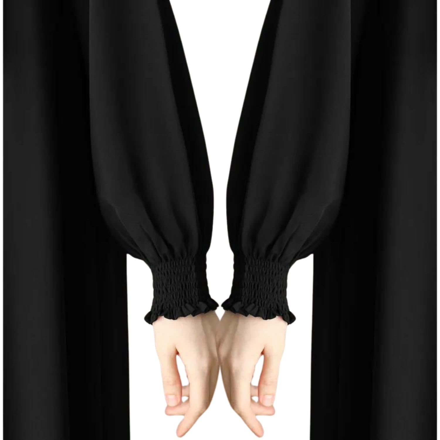 - Elegant Smocking Sleeves: Stylish smocking sleeves add a touch of sophistication and uniqueness to the abaya.