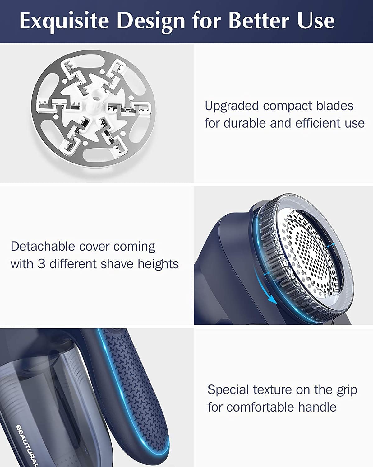 BEAUTURAL Sweater Fabric Shaver Home-Edition, Powerful & Efficient Lint Remover for Clothes and Furniture, AC Adapter or Battery Powered Pill Fuzz Remover Dark Blue