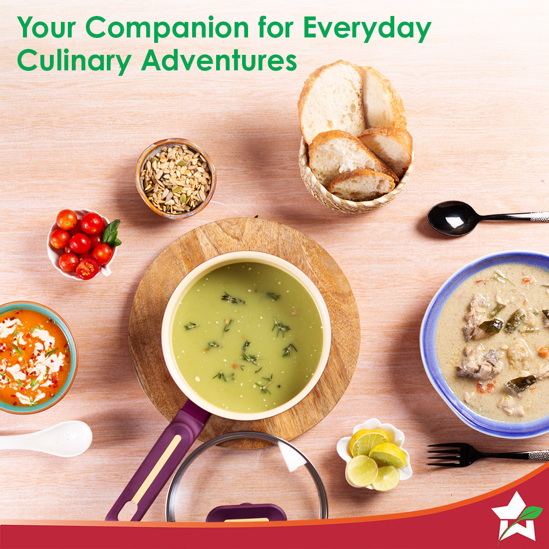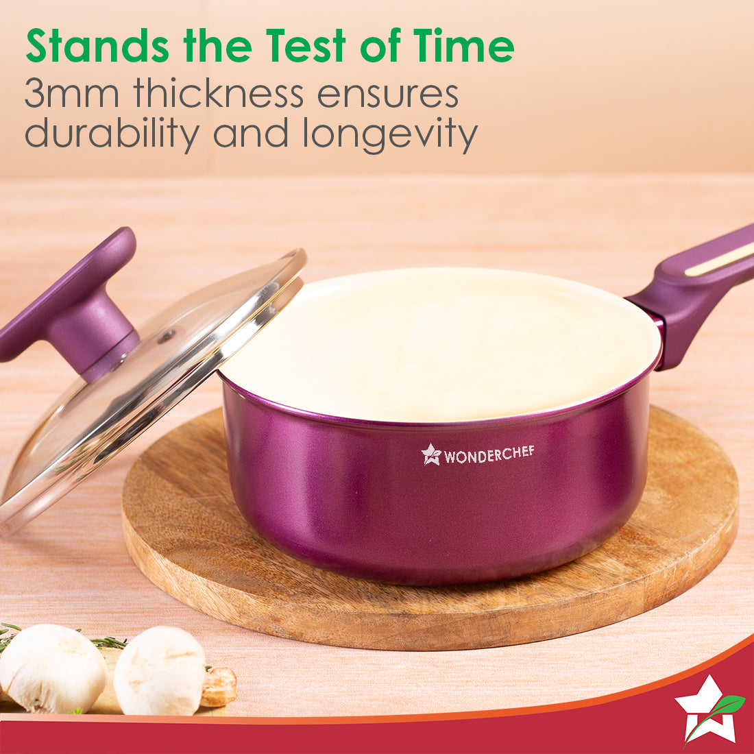 - The Sauce Pan comes in deep purple adding a touch of elegance and appeal to your kitchen.