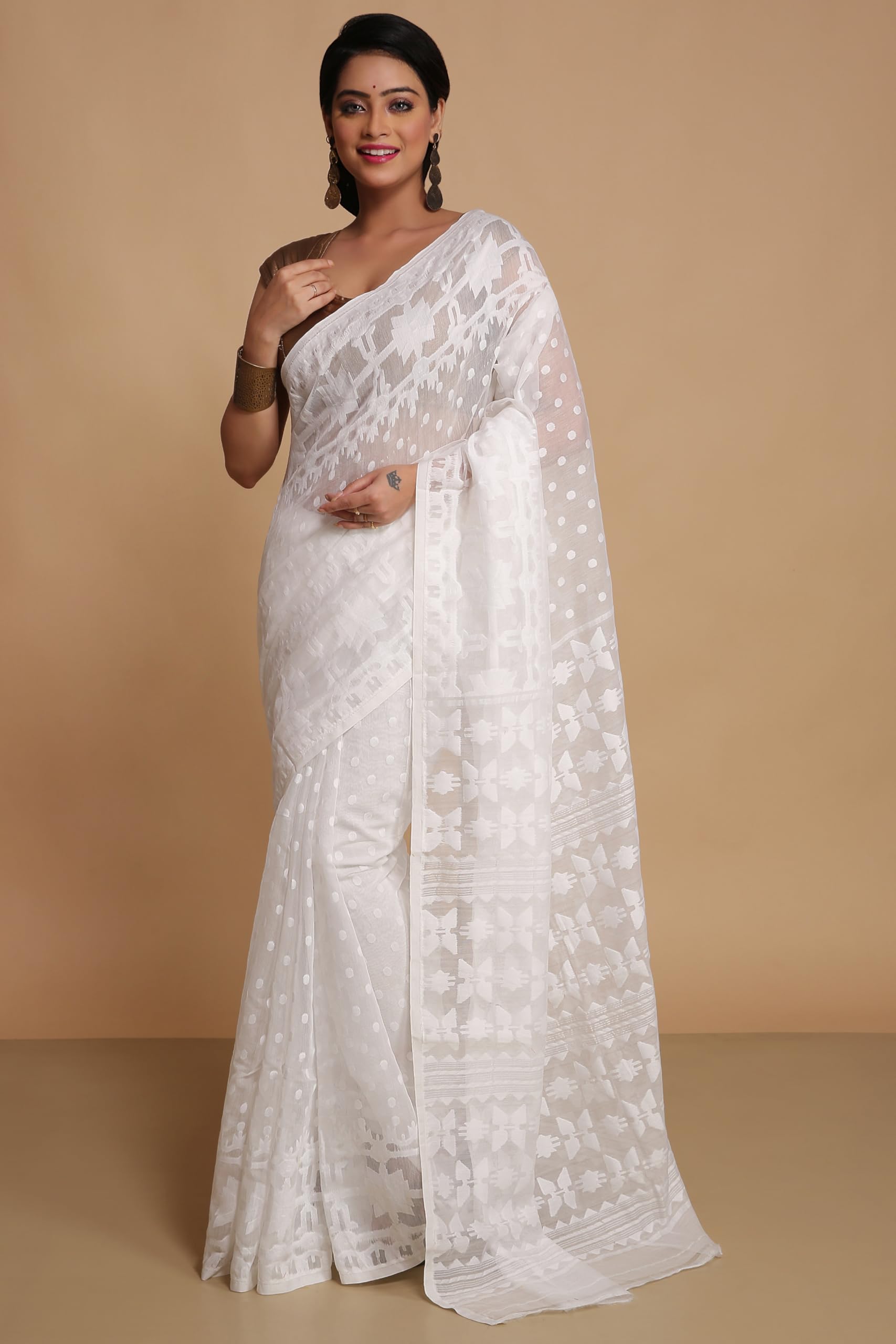 BENGAL HANDLOOM Women'S Cotton Silk Dhakai Softs Vojadi Dhakai Jamdani Sarees (Wite White)