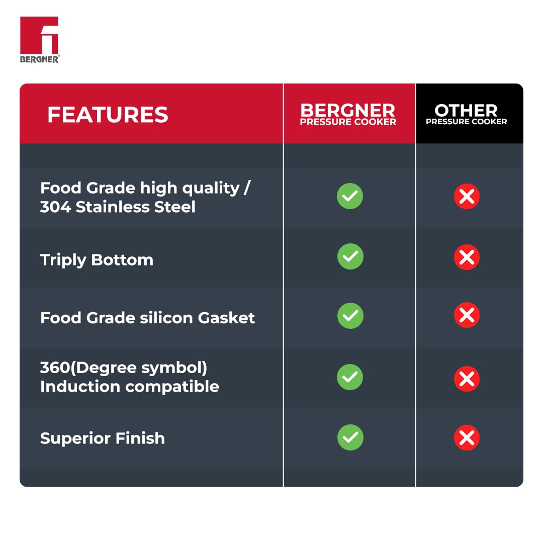 Bergner Sorrento Stainless Steel 2 Litres Outer Lid Pressure Cooker, 2 L Cooker with Outer Lid and Triply Base, Heavy Bottom, Easy Open and Close, Healthy Cooking, Induction Bottom and Gas Stove Ready