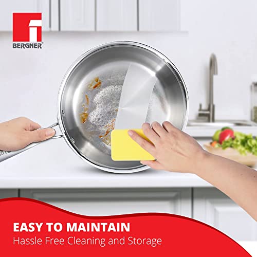 Bergner TriPro Tri-ply Stainless Steel Saucepan with Stainless Steel Lid 18 cm, 2.45 Litre, Induction Base, Silver