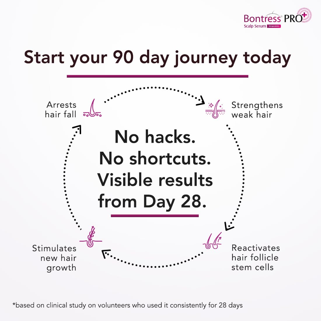 - SCIENCE-BACKED HAIR FALL REVERSAL: Bontress Pro+ Scalp Serum is backed by rigorous scientific research, making it your trusted ally in the journey to effectively reverse hair fall and regain confidence in your hair.