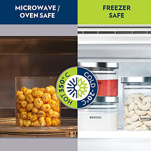 Details: We're here to take the guesswork out of kitchen work. The Borosil kitchen storage jars and containers are the perfect line-up for your kitchen shelf. All you have to do is glance at the clear glass storage jars and pick what you want. The contents of these glass storage containers remain moisture-free and fresh as the day you put them in there. This versatile glass jar looks great and works fantastic. Whether you want to use them to store dry spices on the kitchen shelf, snacks, pulses, grains or cold dips, masala pastes, chutneys in the fridge, these glass jars are perfect for all of it.