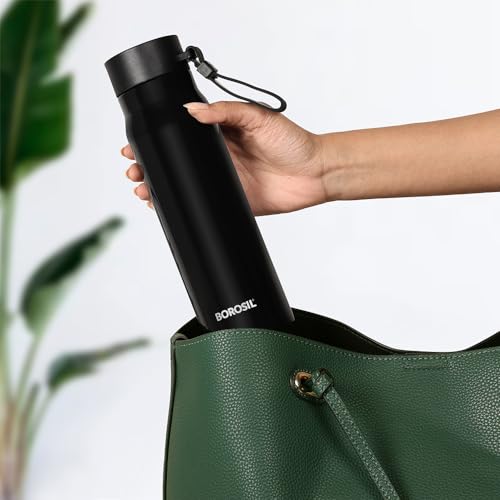 Borosil Hydra Bliss 500 ml Stainless Steel Vacuum Insulated Water Bottle, 13 hrs Hot & 12 Hrs Cold Thermos Flask, Leak Proof, Wide Mouth & Strap, for Home, Office, Sports, School & Outdoor uses, Black