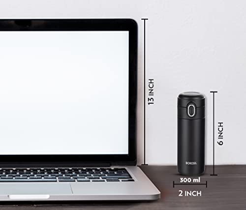 Borosil Stainless Steel Hydra Double Wall Vacuum Insulated Traveller Flask, (BLACK, 300 ml)