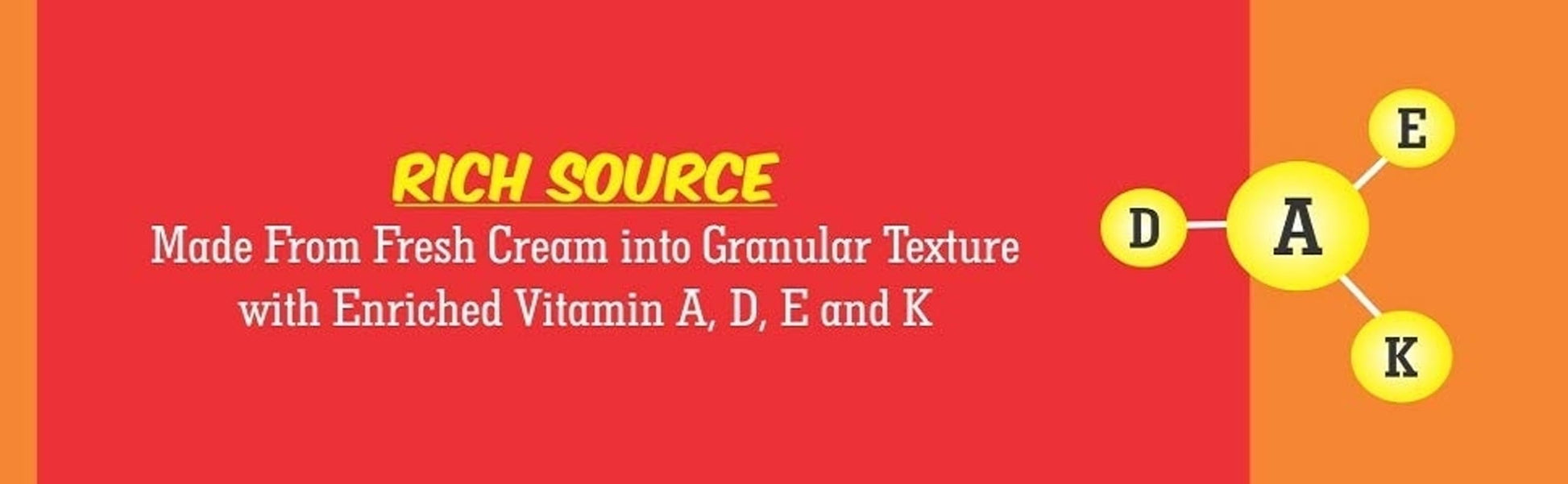 Details: Made from cow's milk by adopting traditional procedures and meeting stringent quality standards. A taste of purity. This special grade ghee is quality assured to make foods; sweet dishes; kheers and sweets flavorsome and mouth-watering.