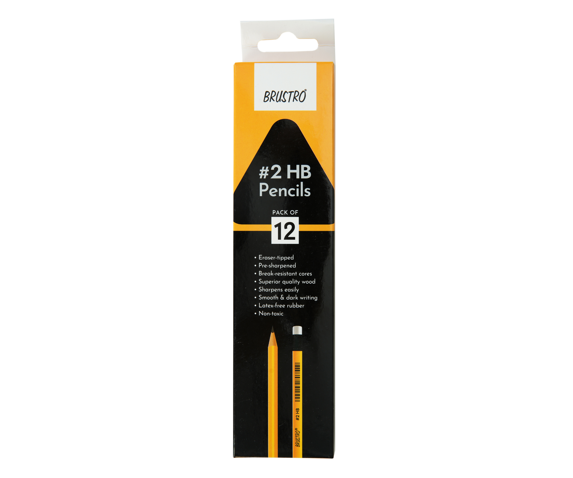 Brustro #2 HB Pencils are made of graphite with an accurate bonding process making them break-resistant and easy to sharpen. They are smooth on paper and give dark writing which is easy to erase. The eraser at the tip is made of latex-free rubber making the pencil non-toxic and safe for children. Ideal for school and office use.