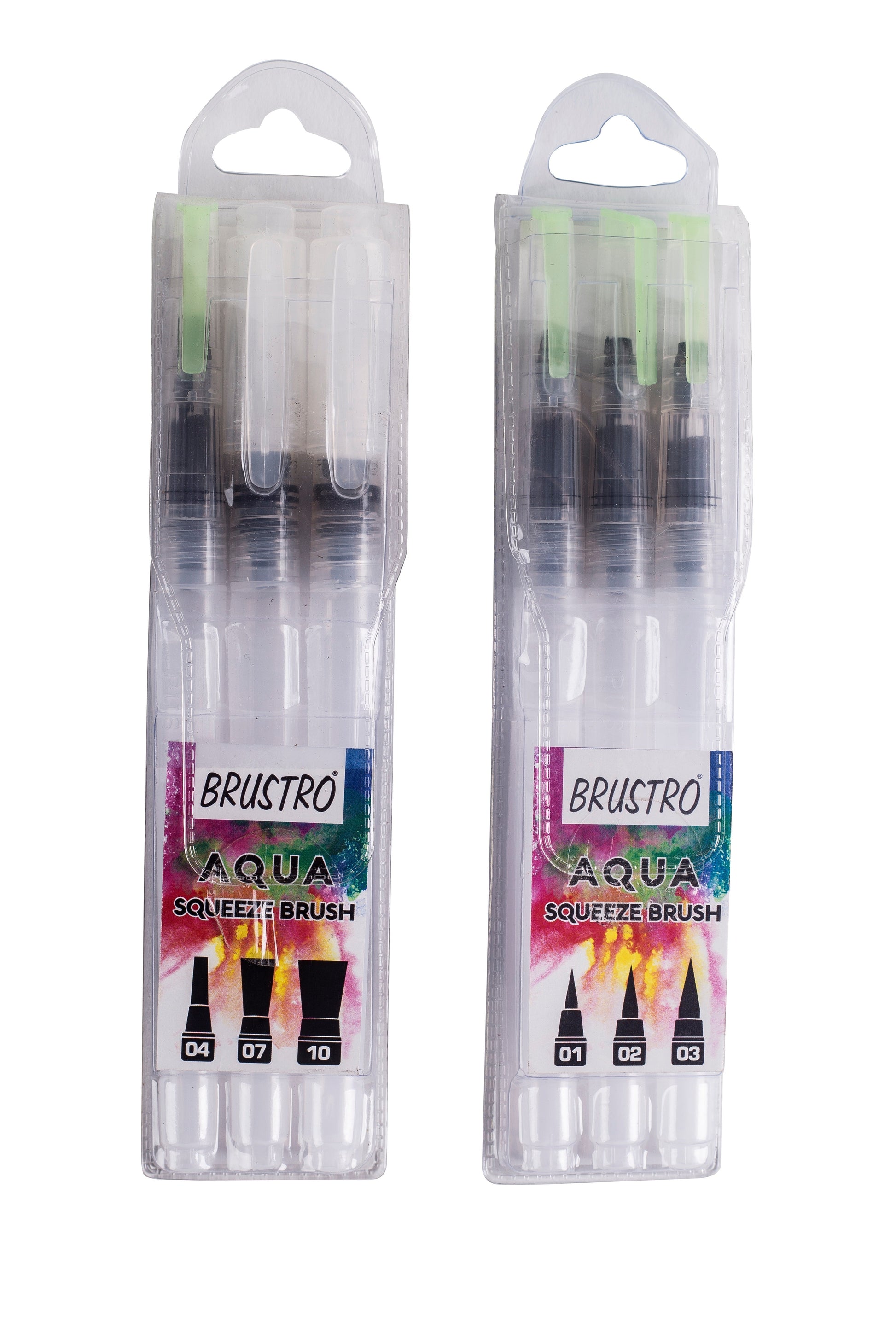 Brustro 3 Flat and Round Aqua Squeeze Leak Proof Watercolour Brush Pen with 9 Sheets Paper Cotton CP 300 GSM, 5x7-inch (Assorted) - Set of 6
