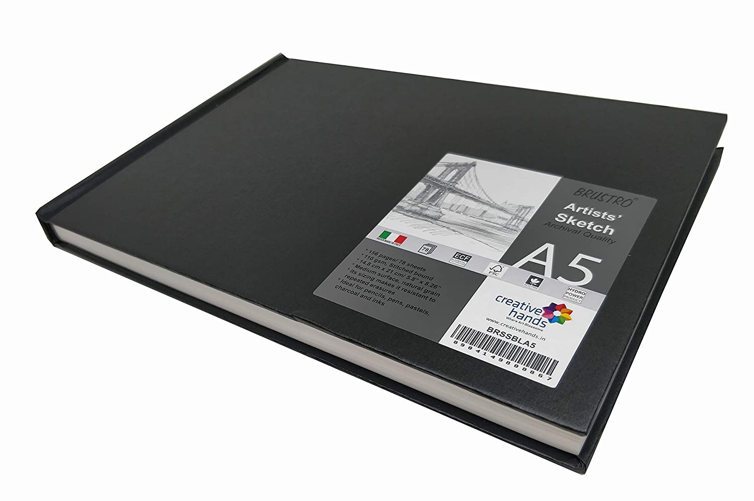 Brustro Artists Sketch Book Stitched Bound A5 Size, Landscape, 156 Pages, 110 GSM (Acid Free)