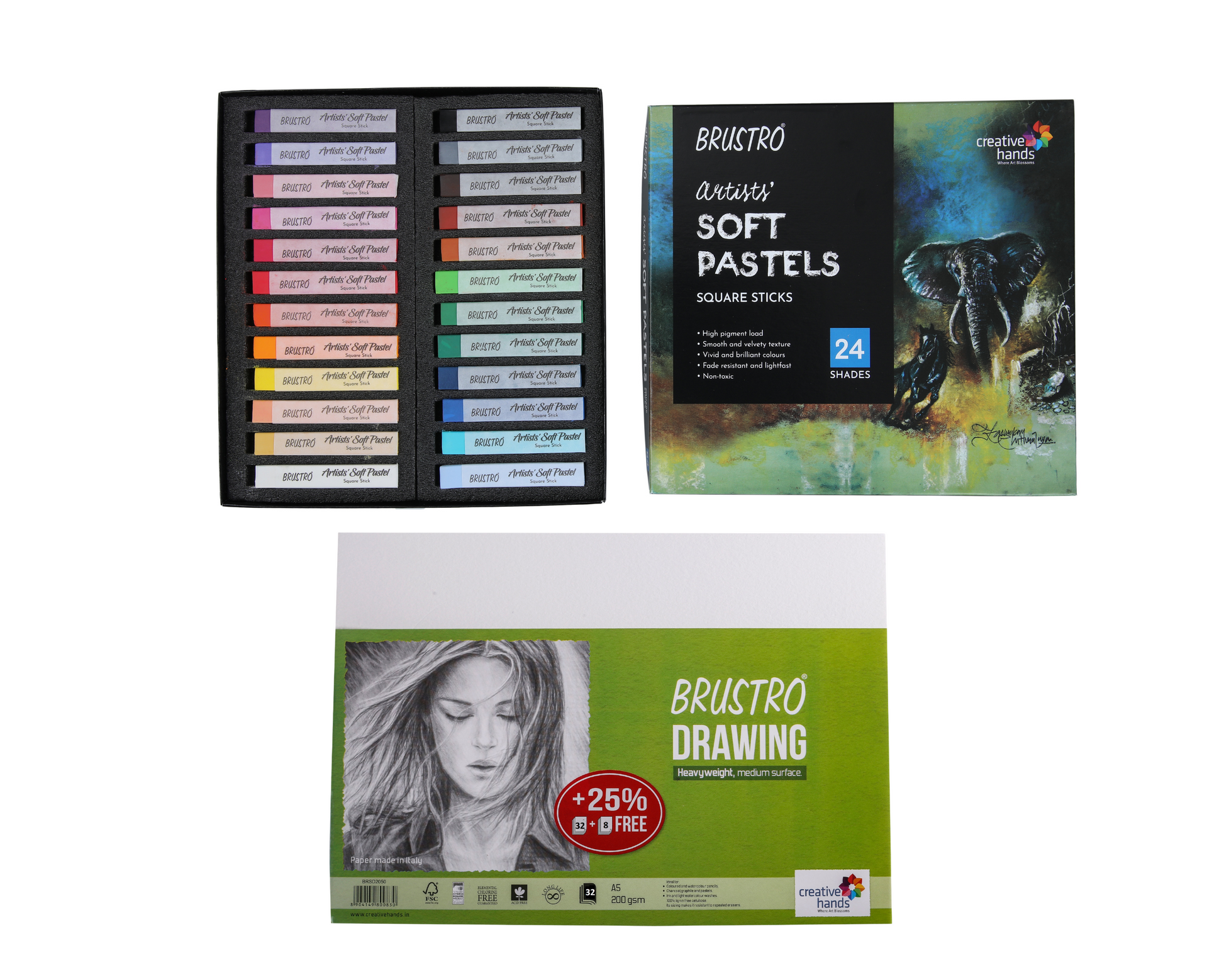 Brustro Artists Soft Pastels Set of 24 with Drawing Paper