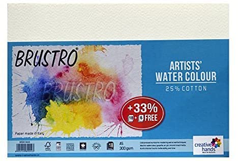 - Brustro Artists Watercolour Paper, 300 GSM, A5 - 25% Cotton, Cold Pressed, 18 + 6 Sheets Free