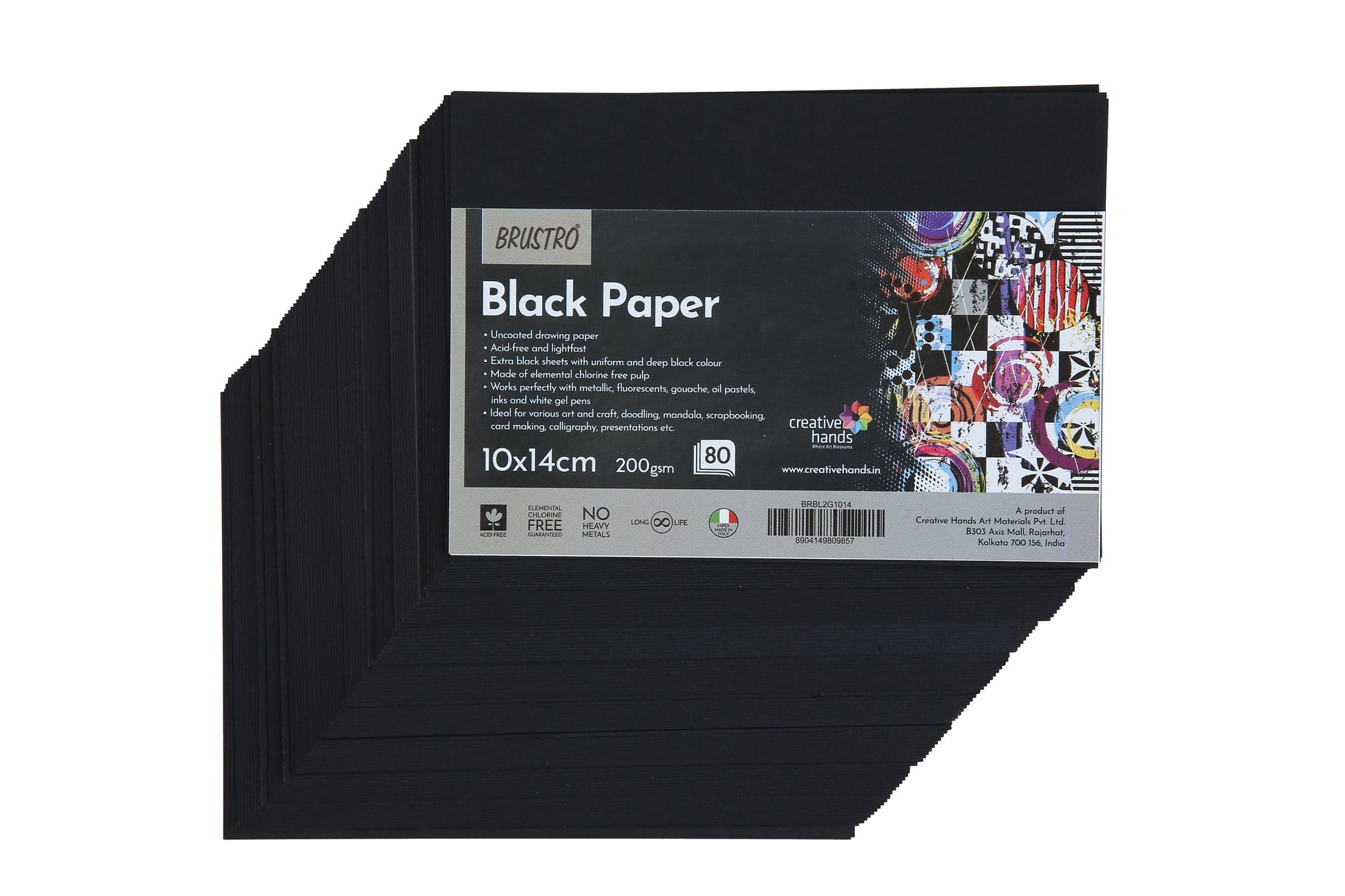 Brustro Black Paper - 200 GSM Size ( Small ) 10 cm x 14 cm (Pack of 80 Sheets)