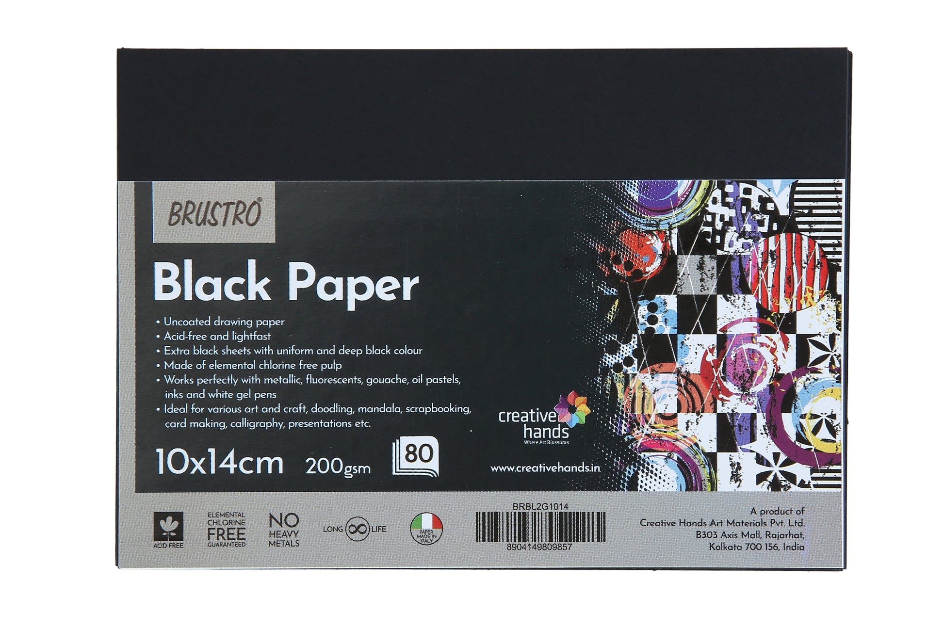 These Brustro Black Paper are Uncoated drawing paper. are Acid-free and lightfast black papers, Extra black sheets with uniform and deep black colour. Made of elemental chlorine free pulp. Works perfectly with metallic, fluorescents, gouache, oil pastels, inks and white gel pens. Ideal for various art and craft, doodling, mandala, scrapbooking, card making, calligraphy, presentations etc. Made in Italy,