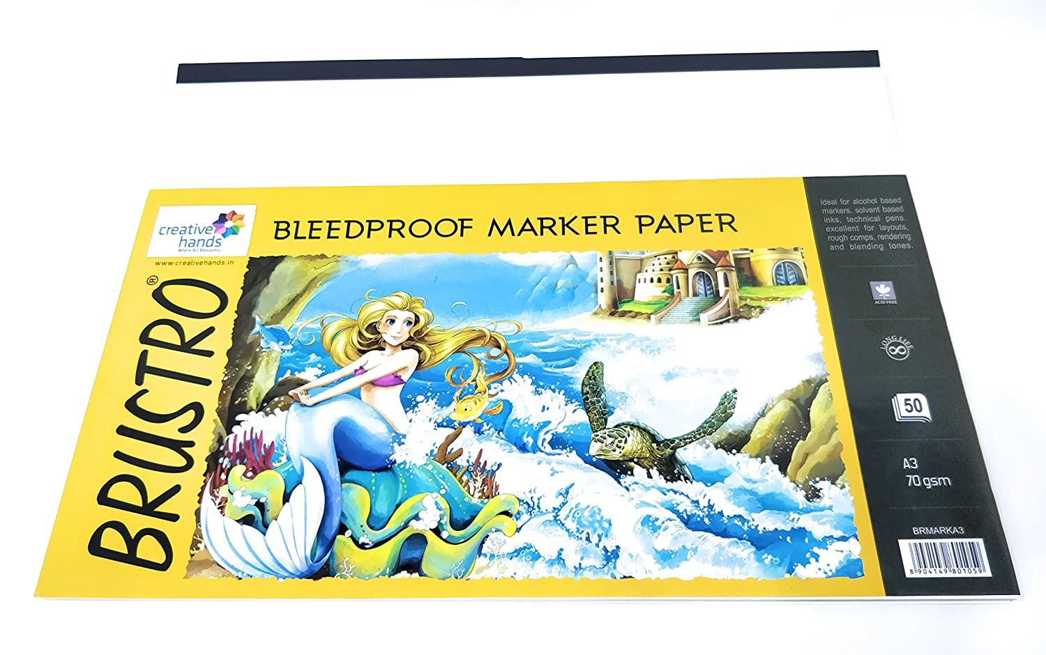 Brustro Marker Papers are semi-transparent, bleed-proof, solvent-resistant, non-fading, non-wrinkling white, acid free drawing paper. This lightweight, specially-coated paper from Brustro is specifically designed for brilliant renditions by alcohol-based markers.