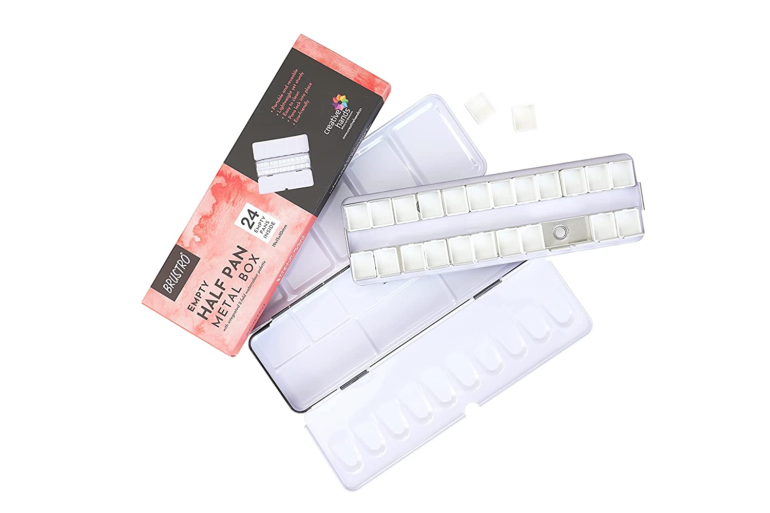 Brustro Empty Watercolour 24 Half Pan Metal Box (Pans Included)