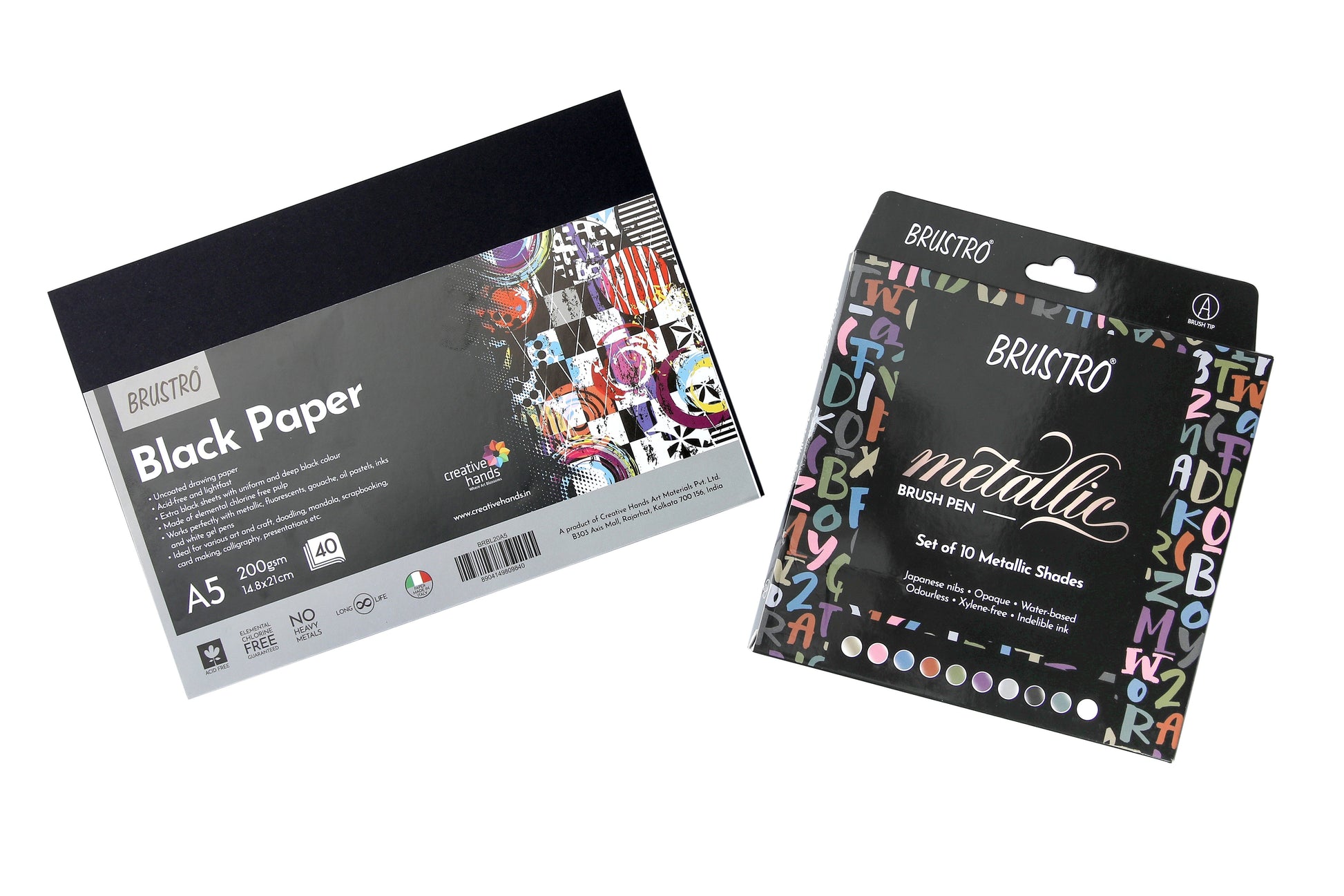 - Pack contains Metallic Brush pens set of 10 and Black paper A5