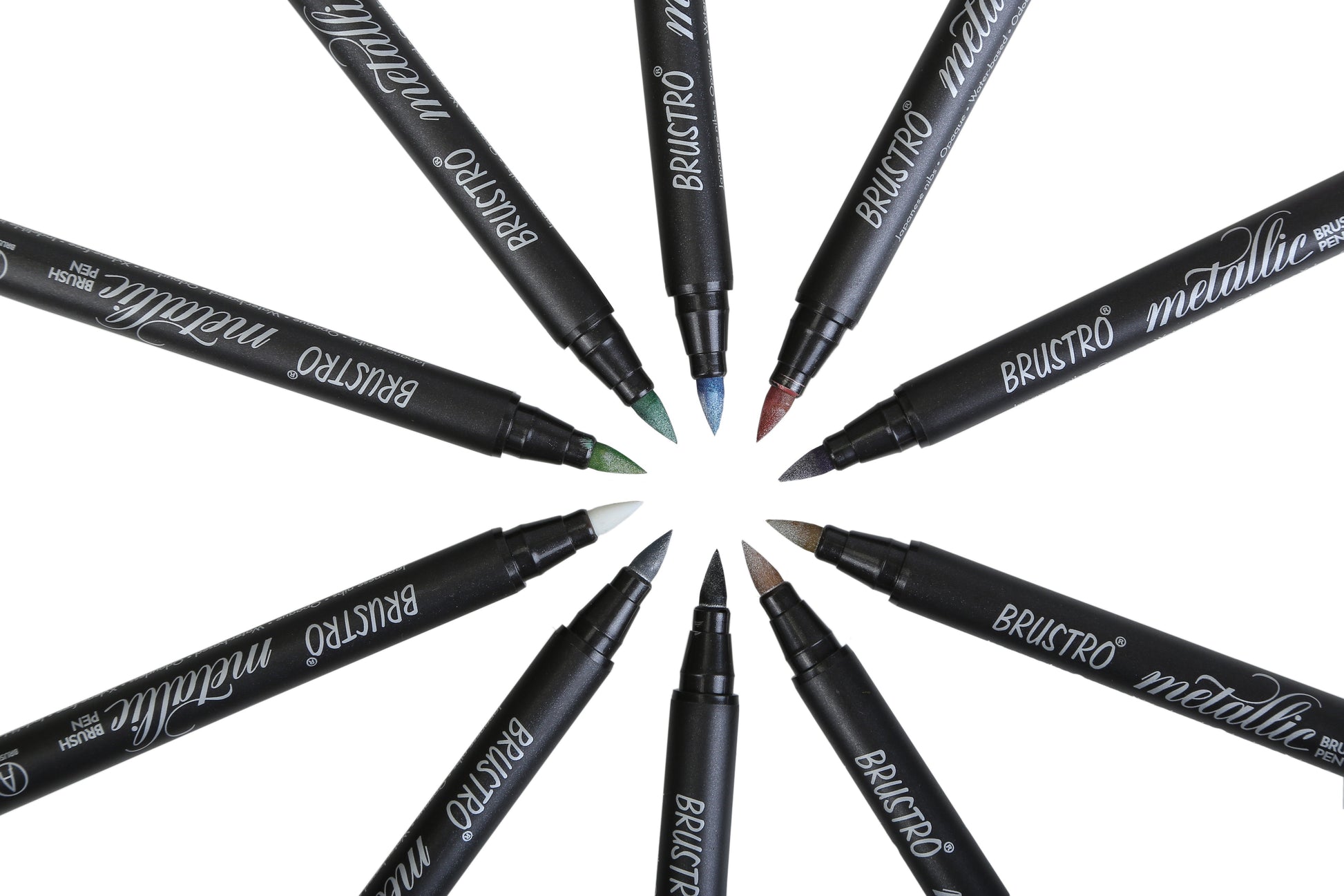 "Brustro Metallic pens with Japanese nibs are the jewels of the pen world- they contain shimmering ink that adds a finishing touch, the same way a gold necklace accents a stylish outfit. When the occasion calls for such shine, you can count on Brustro Metallic Brush Pens for making your work sparkle.