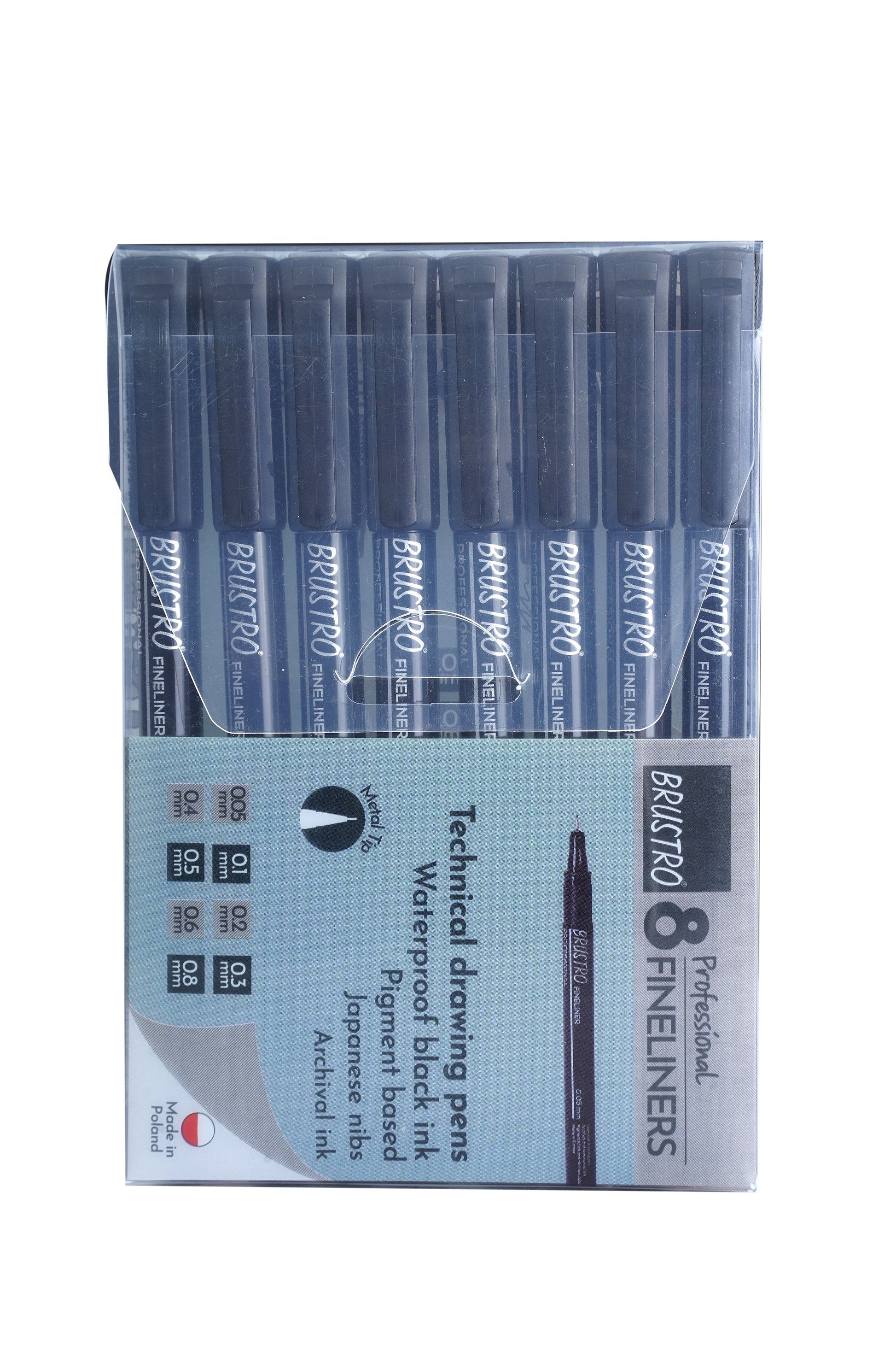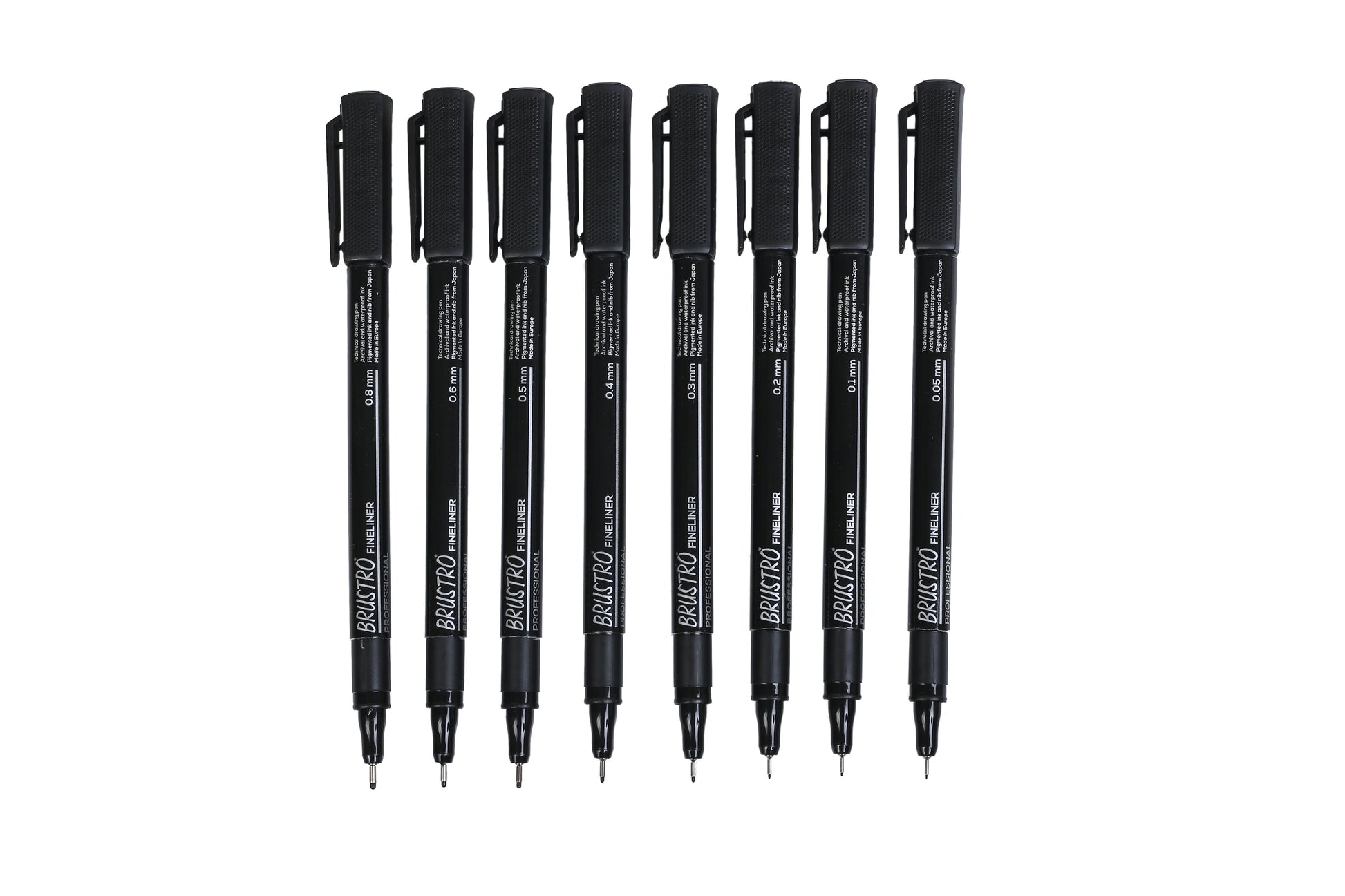 Brustro Professional Pigment Based Fineliner - Set of 8 (Black)