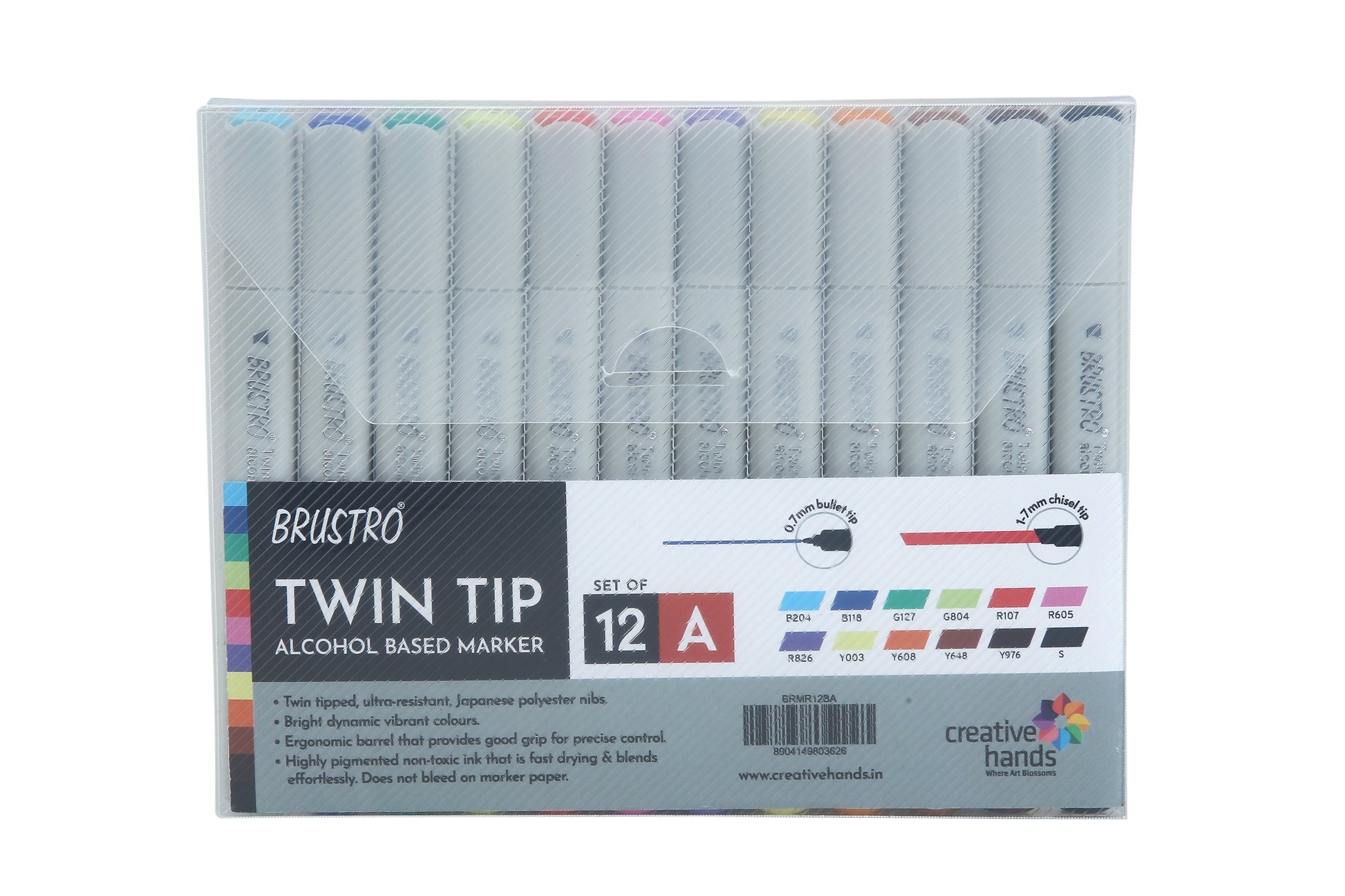 BRUSTRO Twin Tip Alcohol Based Marker Set of 12 - Basic A in Crossline PP See Through Box