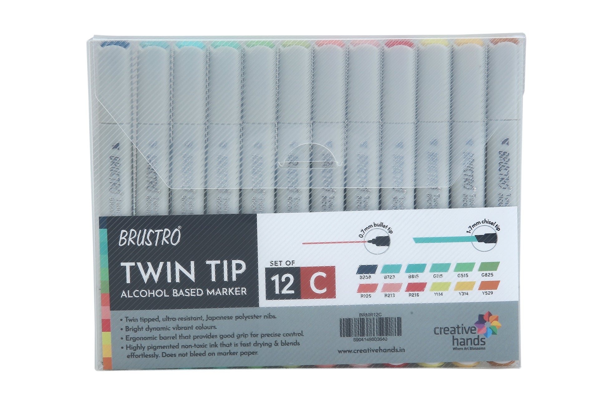 BRUSTRO Twin Tip Alcohol Based Marker Set Of 12 - Basic C in Crossline PP See Through Box