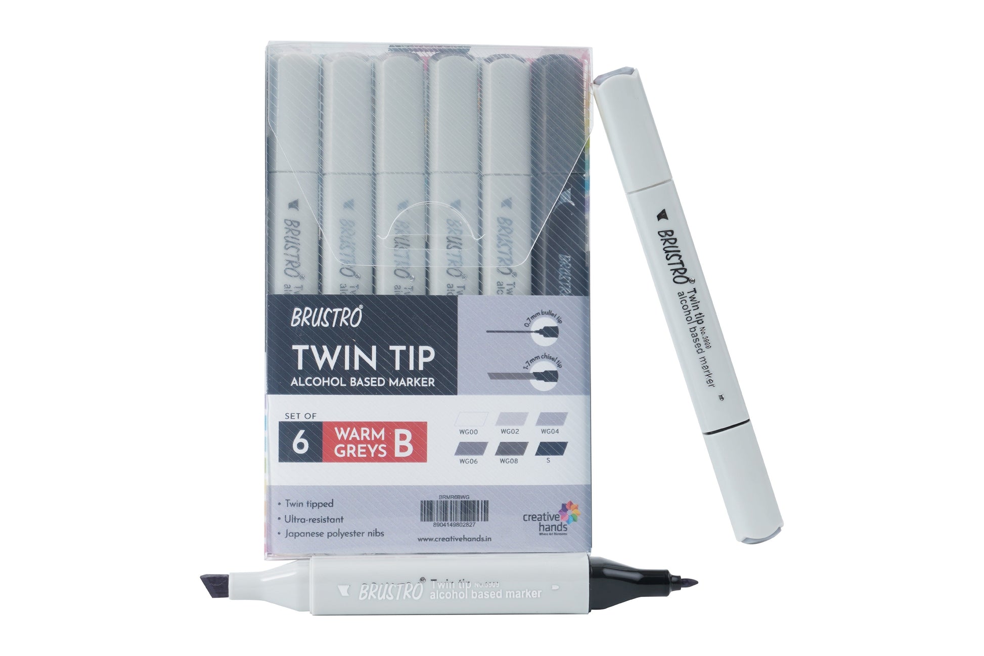 - Set of 6 Warm Grey Shades (Incldues: Warm Grey 0, Warm Grey 2, Warm Grey 4, Warm Grey 6, Warm Grey 8 & Black) in a Blister Pouch.