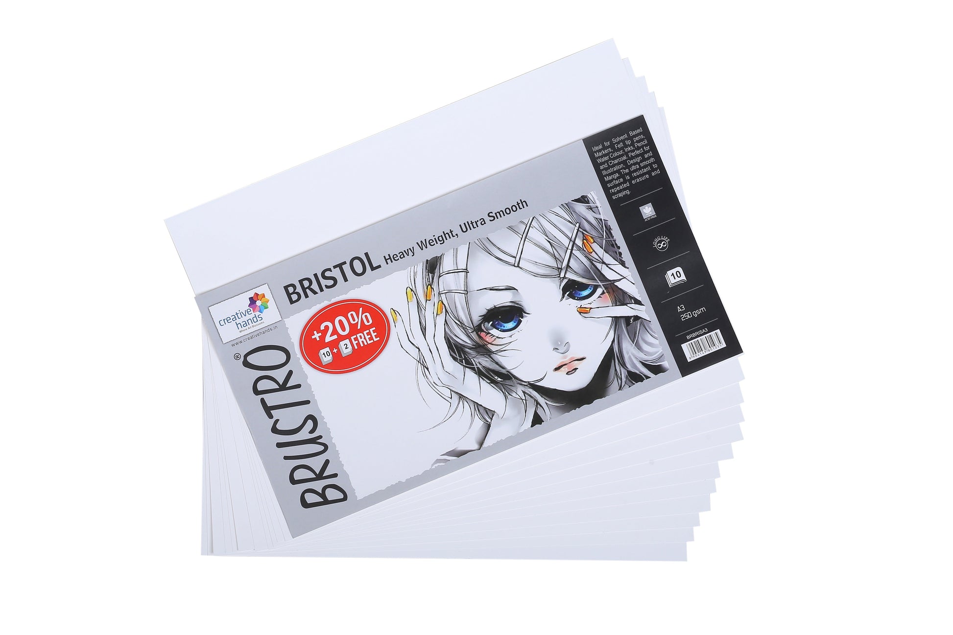 Brustro Ultra Smooth Bristol A3 Size Sheets, 250 GSM (Pack of 10 + 2 Free Sheets)