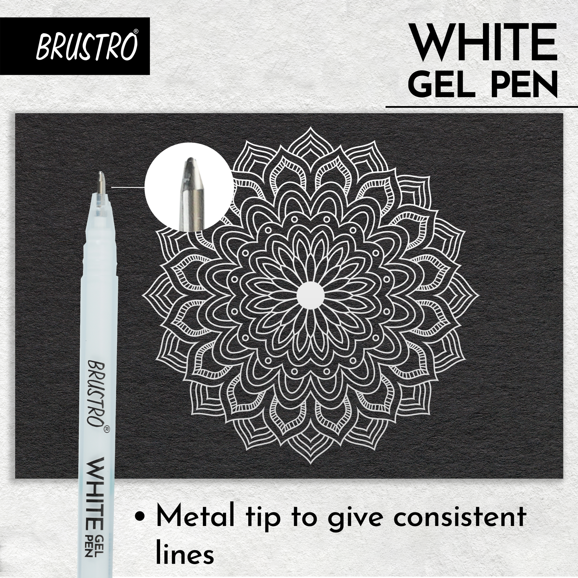 BRUSTRO White Gel Pen | Tip size -1 mm|Pack of 3 | Ideal for Students and Adults, Drawing, Mandala Arts, Students, Office Use, Writing, Pen Set