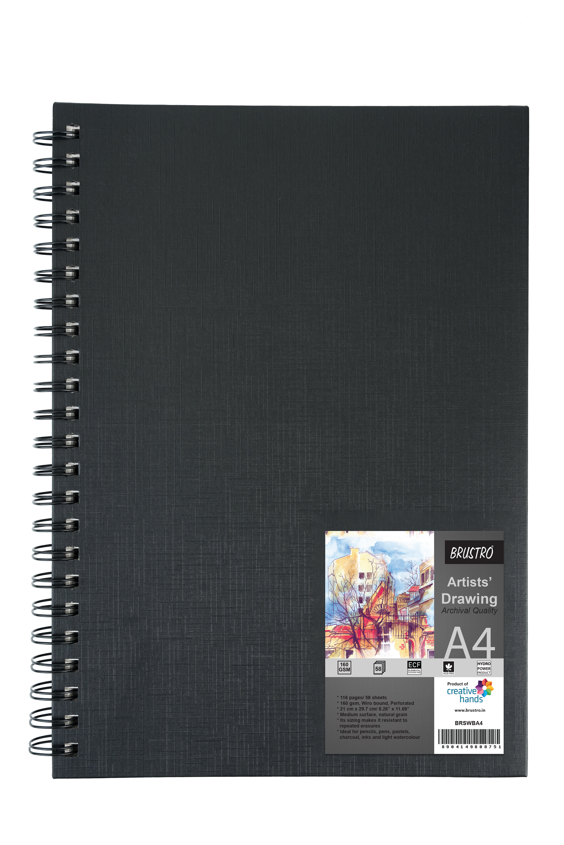 Brustro Artists Wiro Bound Sketch Book, A4 Size, 116 Pages, 160 GSM (Acid Free)