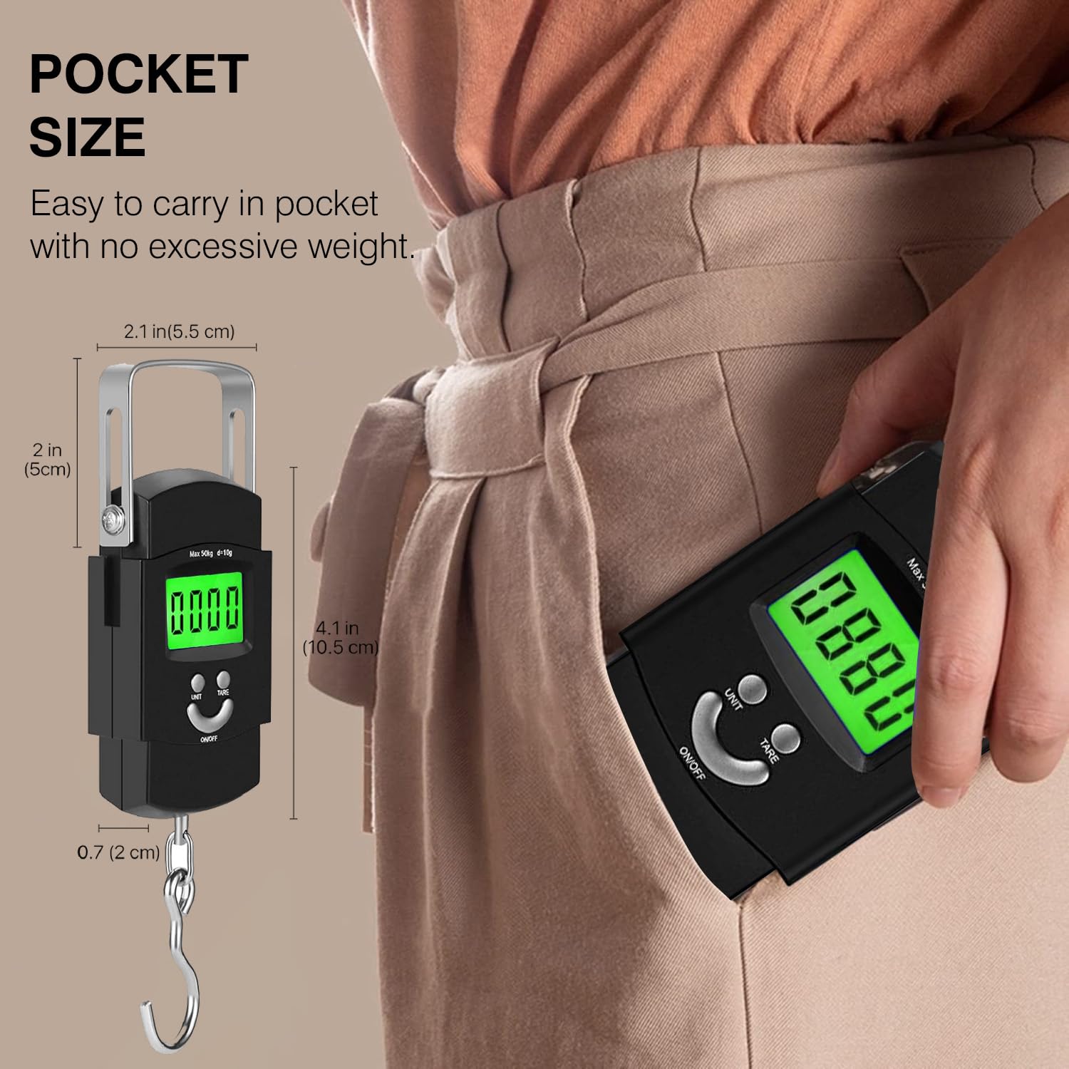 - Stainless Steel Metal Hook For Heavy Weights. Comes With Backlight For Night Vision.