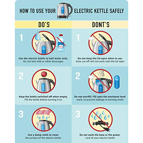 - Includes: Water Kettle, User Manual with Warranty Card ; Do not dry heat the kettle ensure adequate water before starting to boil.