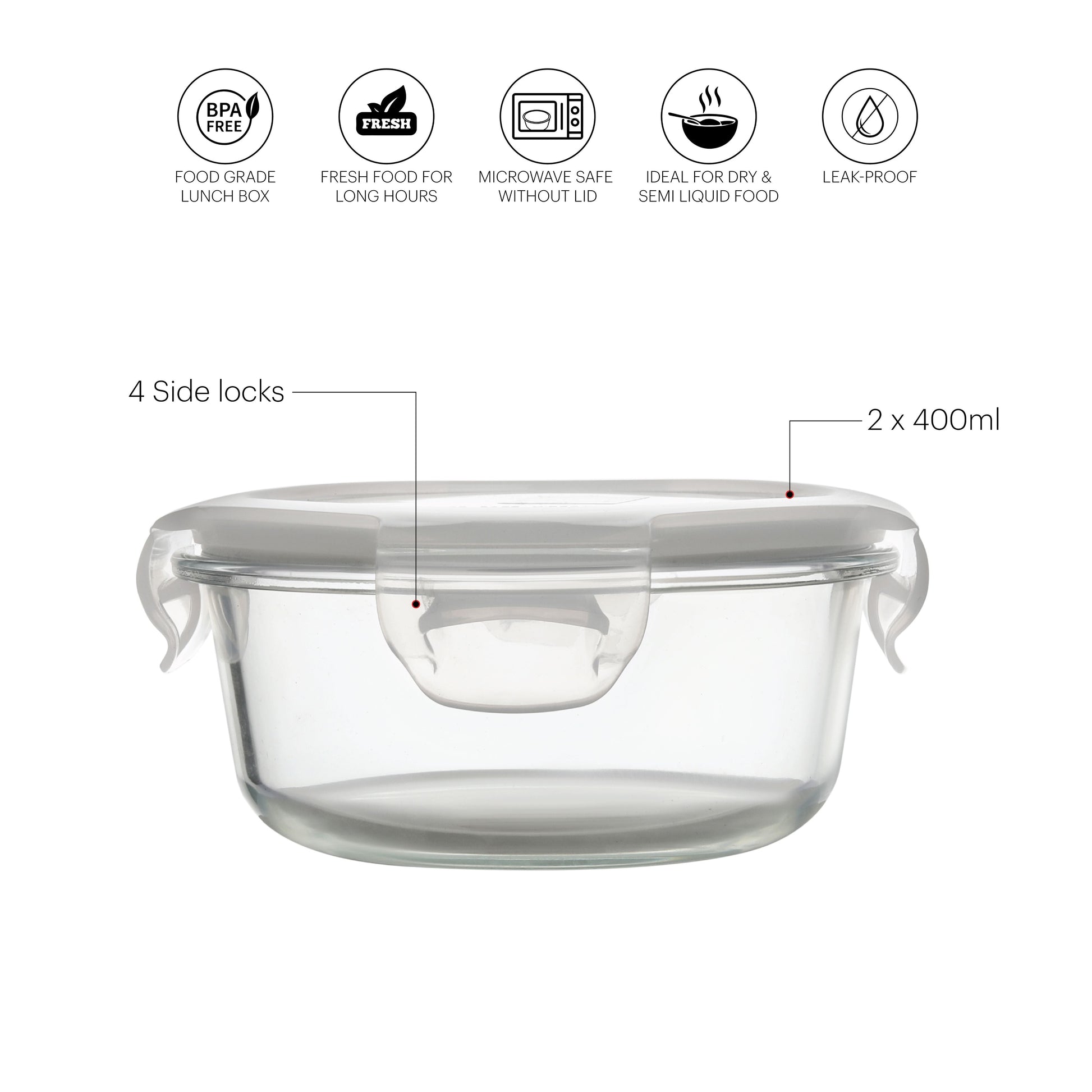 - The Camellia Borosilicate Glass Round Containers come in a set of two with 400ml capacity each