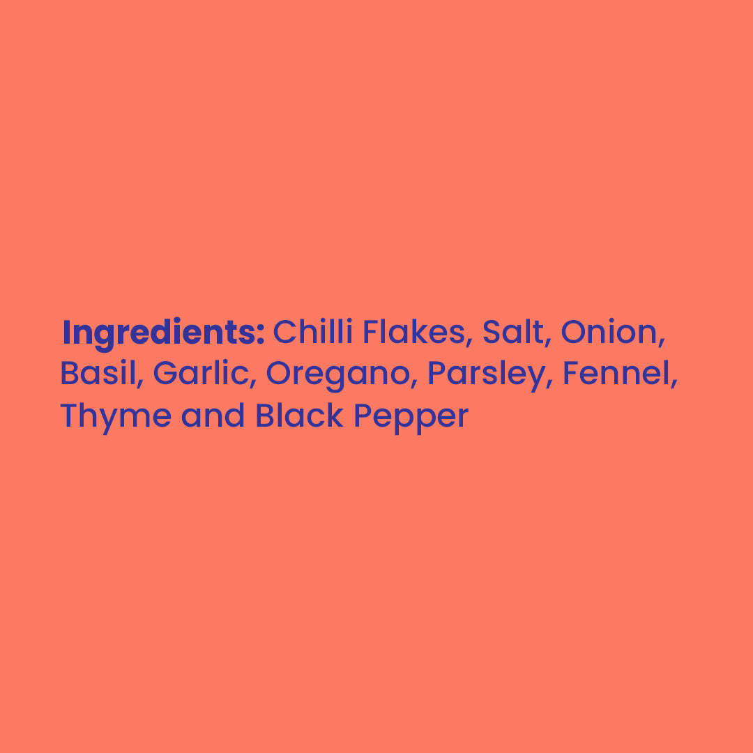 Hey! Its me Italian Pizza Seasoning. Versatility and loads of flavour! A testament to the modern Indian consumerâs desire for new seasonings that are complex yet versatile, CRISTA Italian Pizza Seasoning is a multipurpose seasoning that can be used in a variety of Italian dishes including pizza, pasta, salads and breads. This seasoning is designed to give your food an added punch using a complex blend of authentic, natural and balanced spices. It can also be added to pizza dough to make it more flavourful. Freshly machine ground using our sophisticated hammer crushers and micro pulverisers, the blend is mixed in an automatic GMP blender to achieve the desired balance and consistency.
