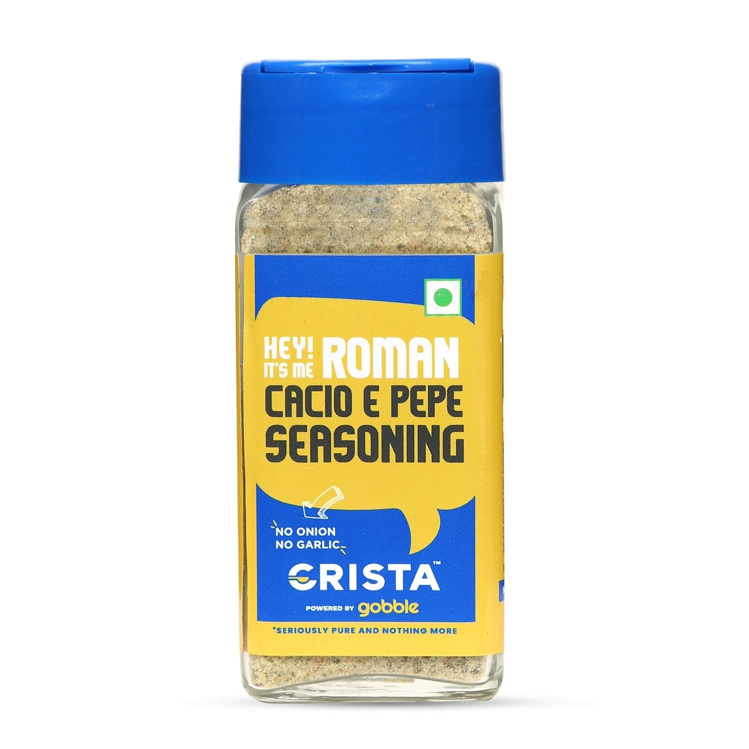 Hey! Its me Roman Cacio e Pepe Seasoning. Deriving its inspiration from a traditional Roman dish, Cacio e Pepe literally means cheese and pepper. What makes CRISTA Roman Cacio e Pepe seasoning utterly delicious is its uncomplicated preparation, bringing you comfort food with a nice peppery kick. Ideal for all kinds of Italian pasta entrées, this seasoning will help you prepare a rich, creamy pasta dish. Freshly machine ground using our sophisticated hammer crushers and micro pulverisers, the blend is mixed in an automatic GMP blender to achieve the desired balance and consistency. Scan the QR code on the bottle for a lip-smacking recipe.