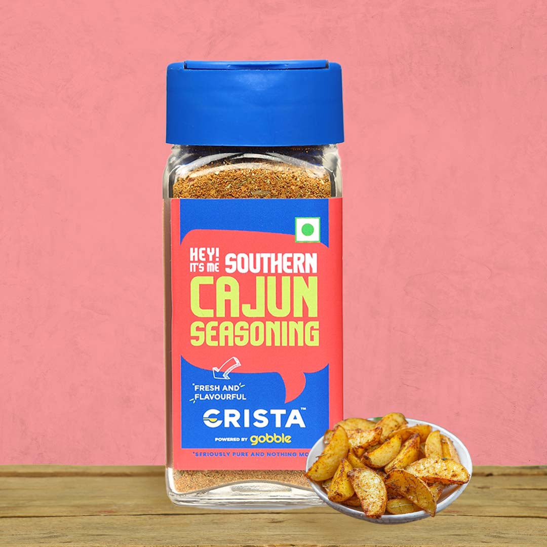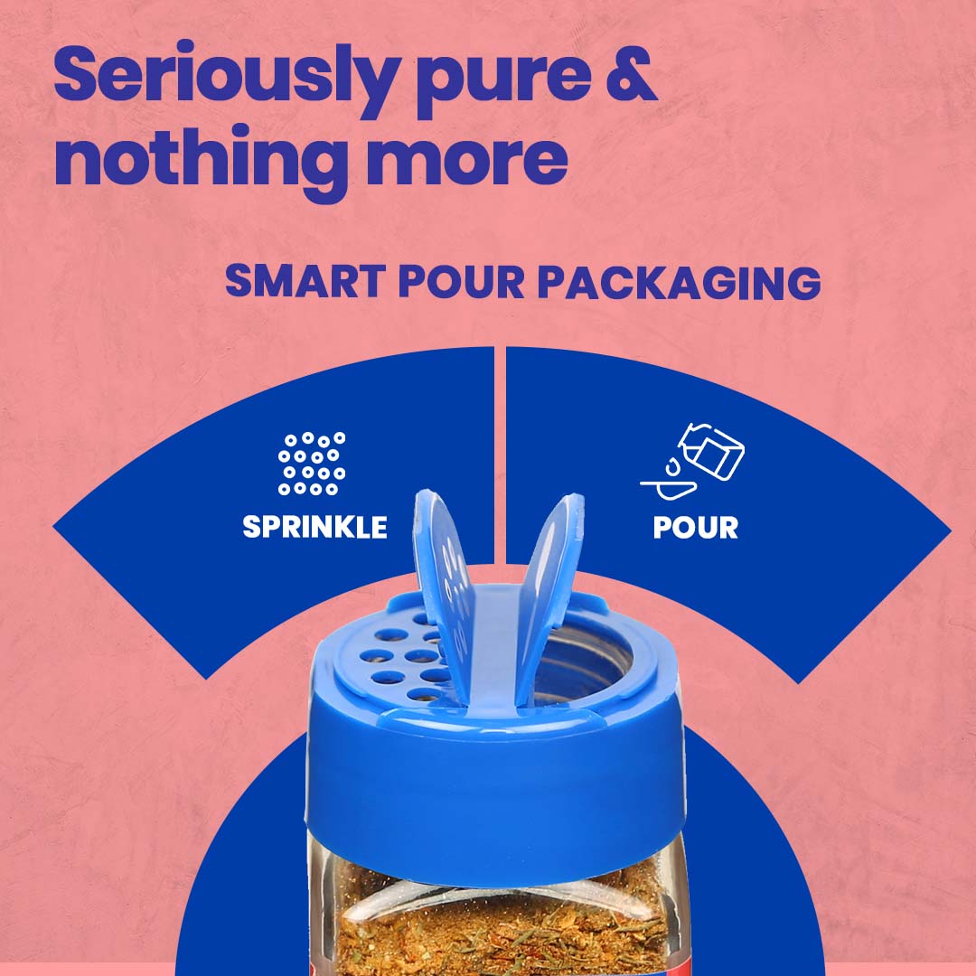 Hey! Its me Southern Cajun Seasoning. This complex and popular blend adds a burst of smoky, garlicky and peppery flavour. With a dash of heat, this seasoning has its origins in Southern America and is a great way to flavour veggies, meats, soups, fish and salads. The versatile and multipurpose flavour profile has made this seasoning popular in a variety of cuisines and is a cult favourite with Gen Z and millennials in India. Freshly machine ground using our sophisticated hammer crushers and micro pulverisers, the blend is mixed in an automatic GMP blender to achieve the desired balance and consistency. Scan the QR code on the bottle for a lip smacking recipe.