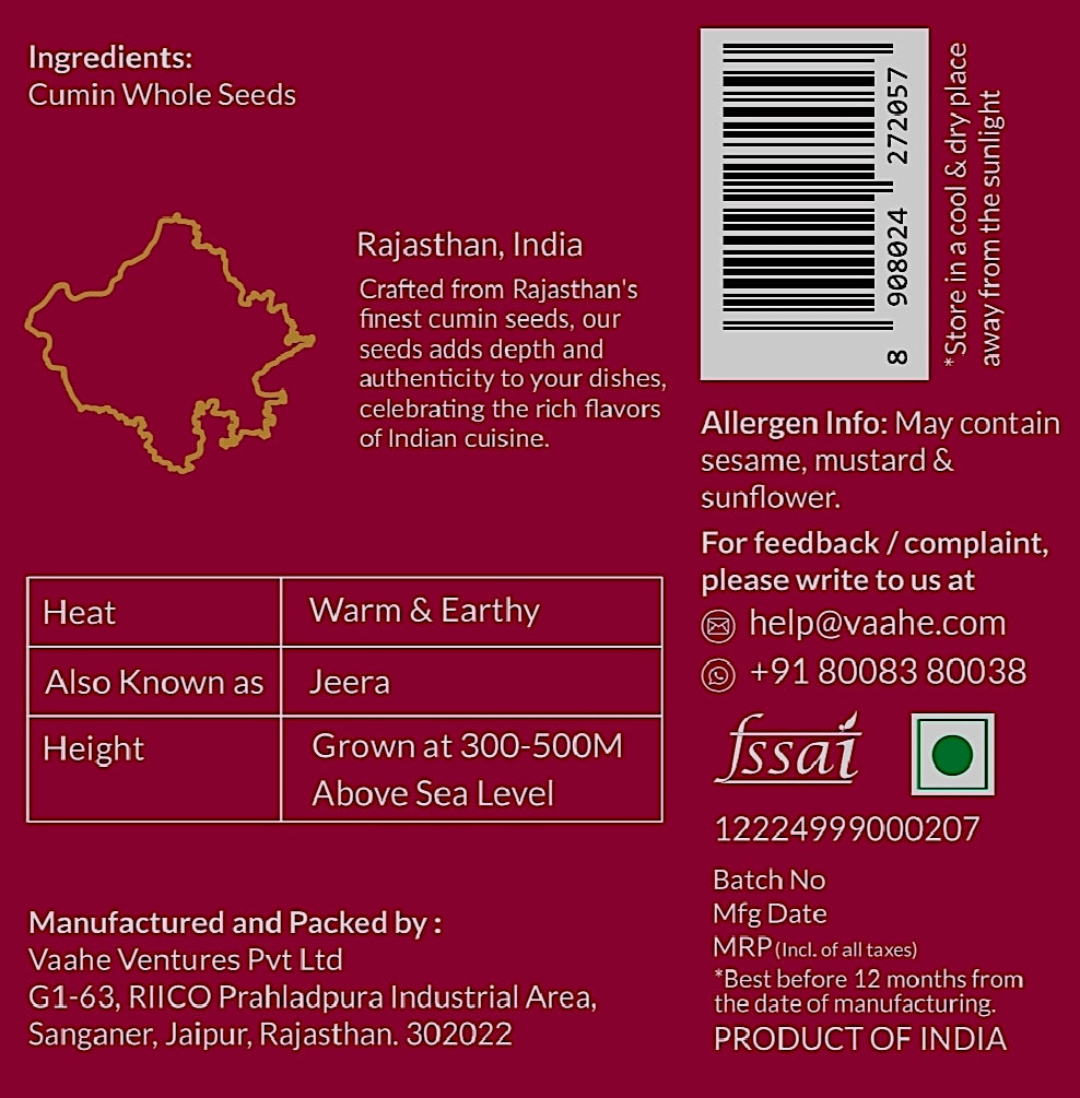 Our single-origin cumin seeds bring a warm, earthy flavor that adds depth to every dish. Cumin, an essential spice for many Indian and global cuisines, gives your meals its unique, aromatic touch. Perfect for seasoning curries, stews, and roasted vegetables.